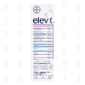 Debe consumirse con especial precaución junto con otros productos, incluyendo suplementos y/o alimentos o bebidas fortificados que contengan vitaminas A o D, hierro o cobre. Uso pediátrico: No se recomienda. Reacciones adversas: En casos poco frecuentes se puede presentar estreñimiento, diarrea, náusea y vómito; dolor de cabeza, mareo, insomnio y nerviosismo que, por lo general, no requieren ningún tratamiento. Puede ocurrir reacción alérgica o anafiláctica a los componentes de la fórmula. Los síntomas incluyen urticaria, hinchazón facial, respiración sibilante, enrojecimiento de la piel, erupción, ampollas y shock anafiláctico. Se puede observar una ligera coloración amarilla en la orina. Puede presentarse un aumento en los niveles de calcio en la orina. El producto contiene hierro, el cual puede llevar a una coloración negra en las heces. Interacciones medicamentosas y alimentarias: No administrar Elevit durante un tratamiento con tetraciclinas y/o fluoroquinolonas, levotiroxina y diuréticos tiazídicos, a menos que transcurran dos horas entre ambas medicaciones. En caso de ingesta accidental o sobredosis, consulte a su médico. Este producto contiene lactosa. Consérvese la caja bien cerrada a no más de 25°C. Protéjase de la luz. No se deje al alcance de los niños. Reporte las sospechas de reacción adversa al correo: farmacovigilancia@cofepris.gob.mx.