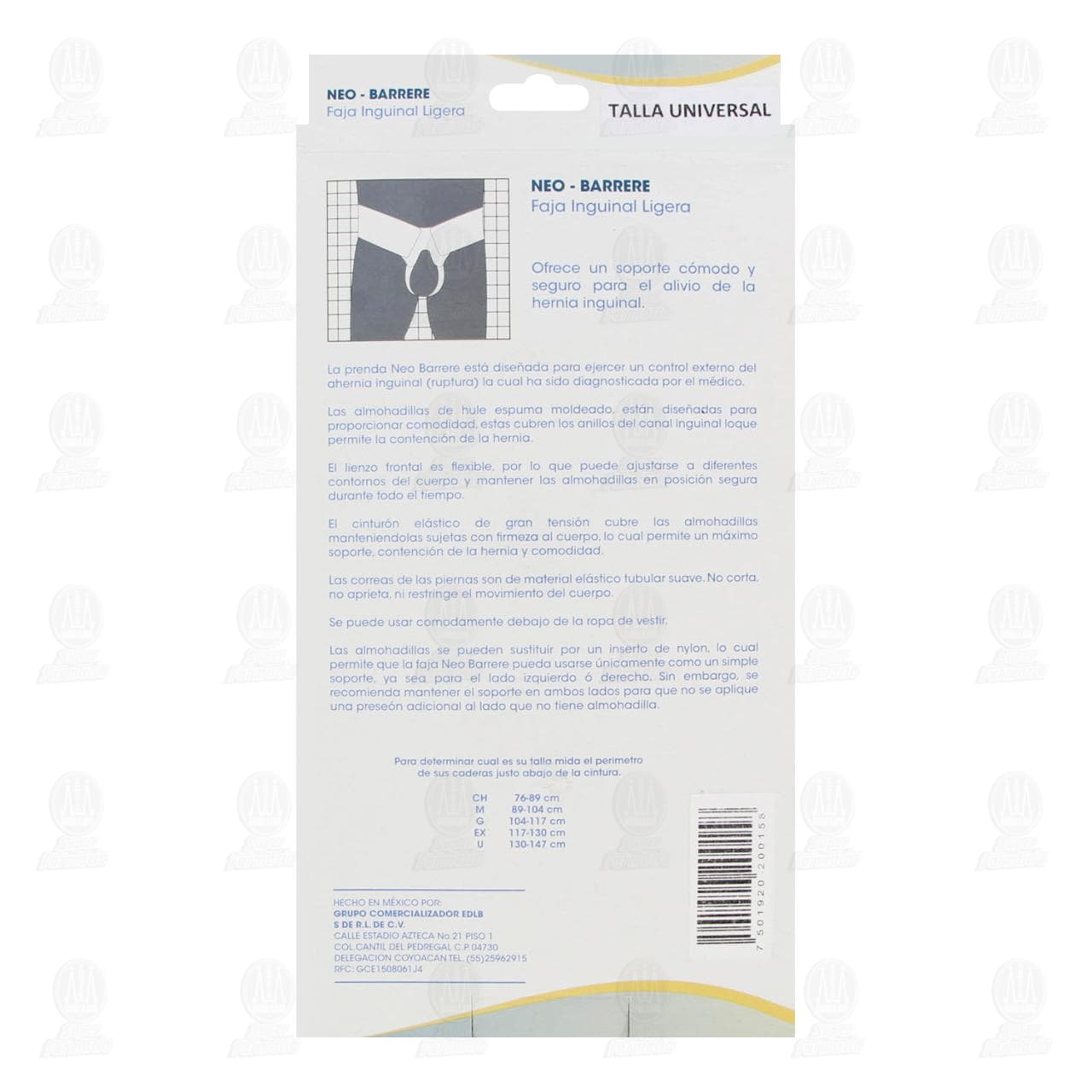 Faja Inguinal Barrere Ligera Talla Universal, 1 pz.