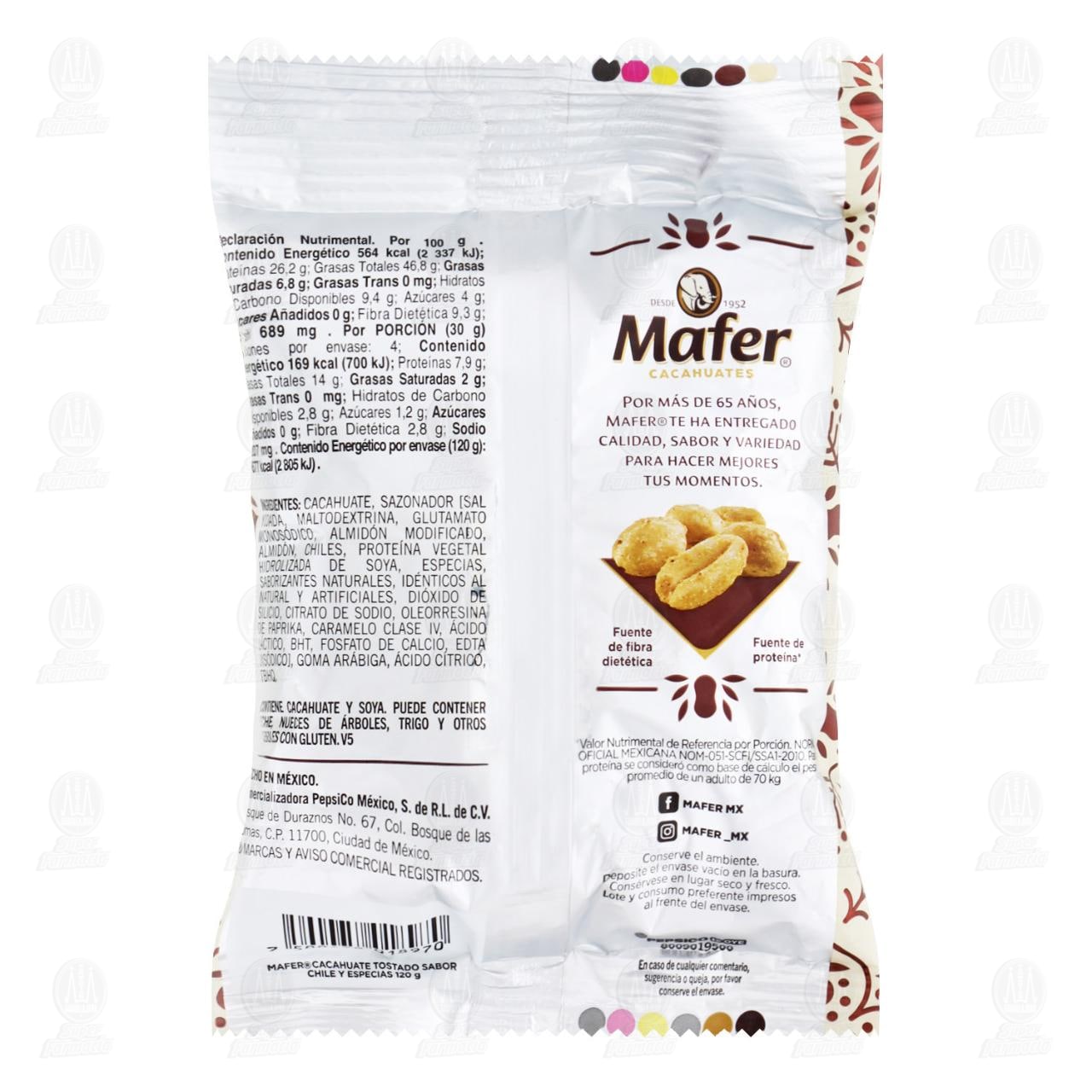 Cacahuate Tostado Mafer Sabor Chile y especias. Bolsa con 120 gramos.