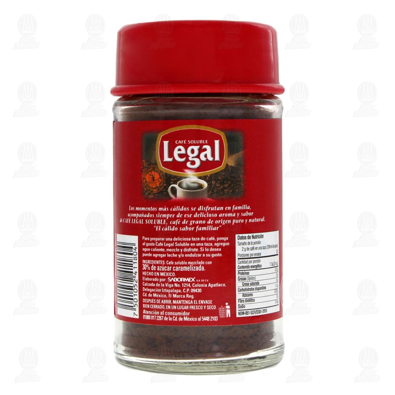 Café Soluble Legal Mezclado con Azúcar, 50 gr.