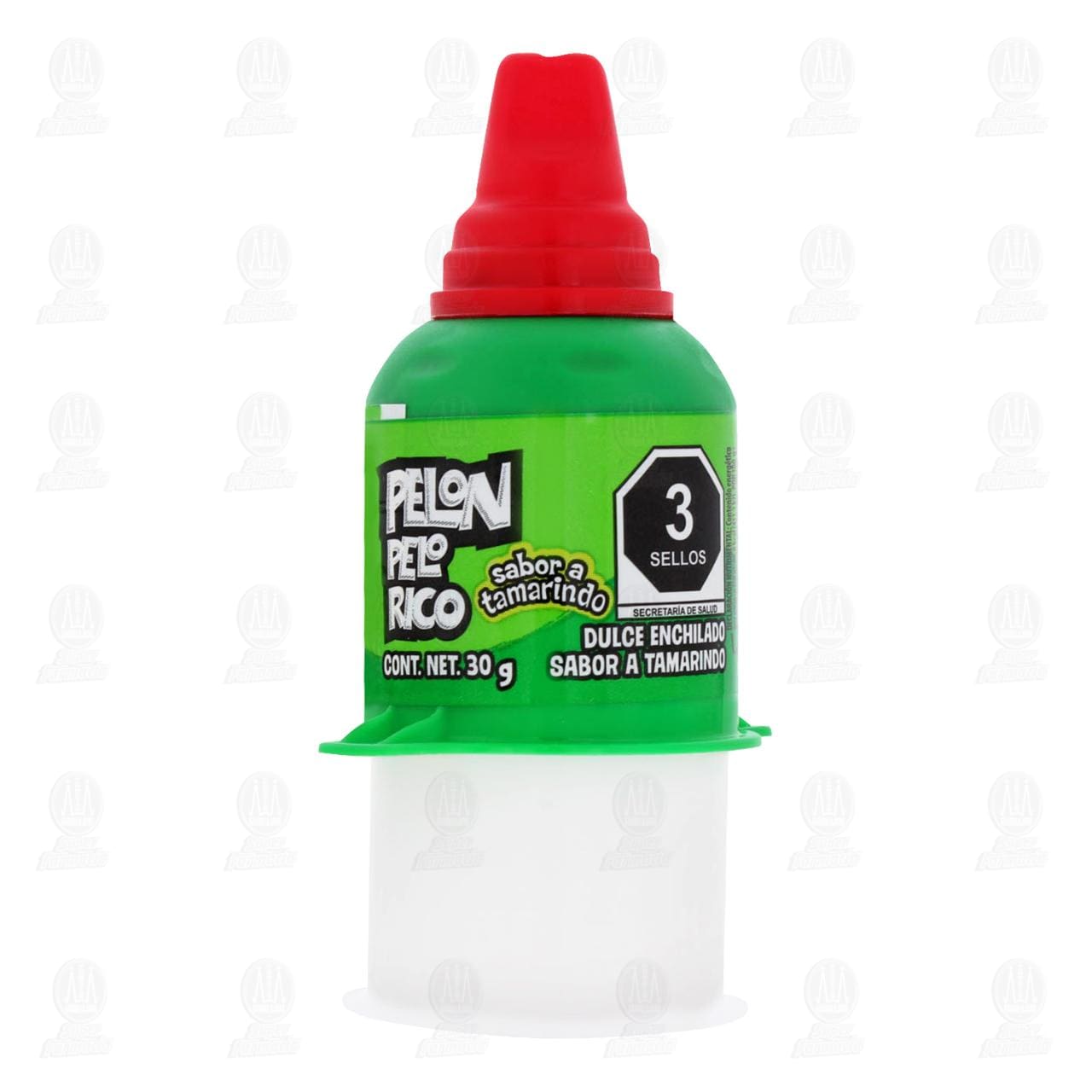 Dulce enchilado Pelon Pelo Rico, sabor a tamarindo. Contiene 30 gramos.