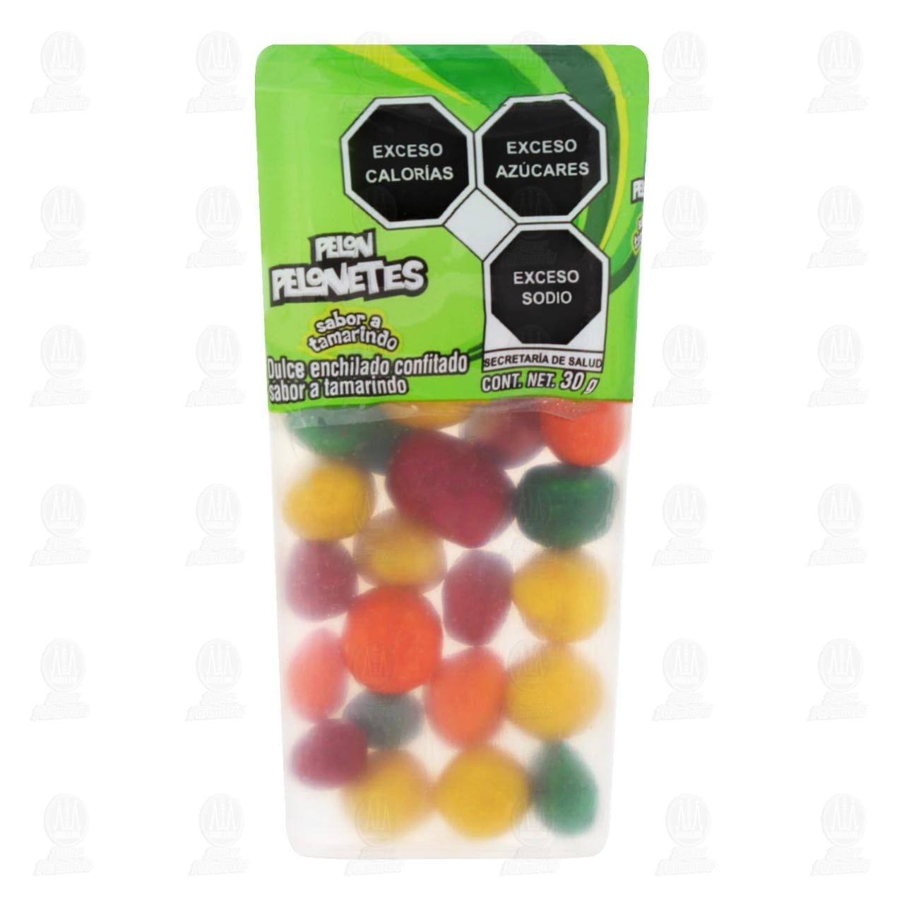 Dulce enchilado Pelon Pelonetes confitado, sabor a tamarindo. Contiene 30 gramos.