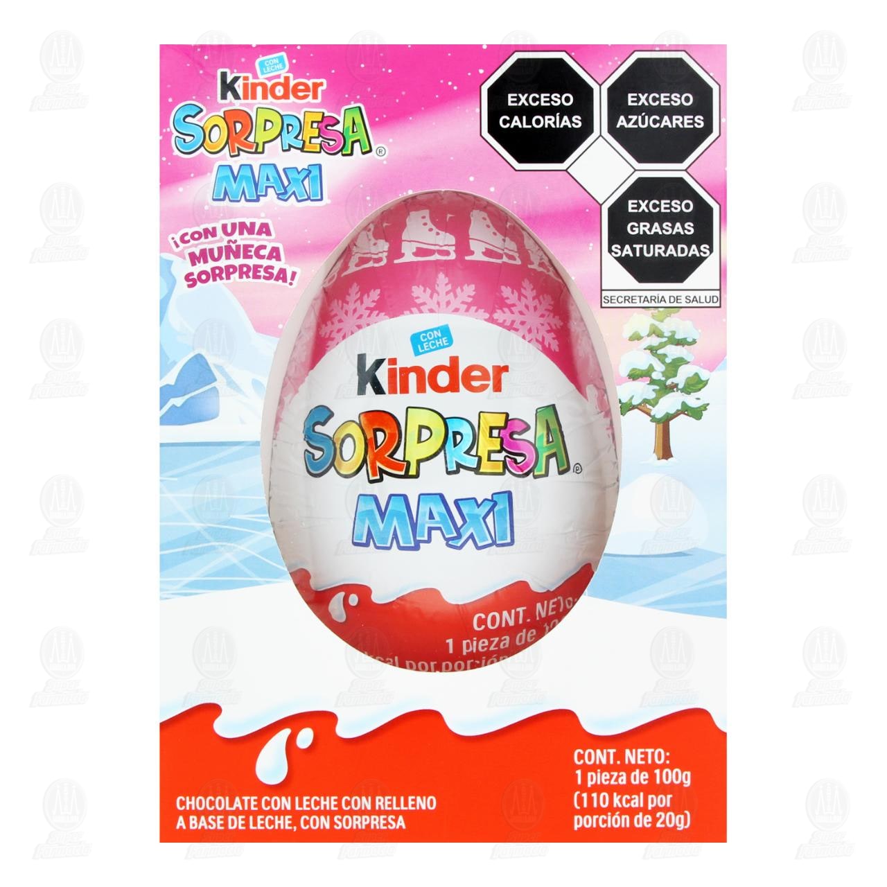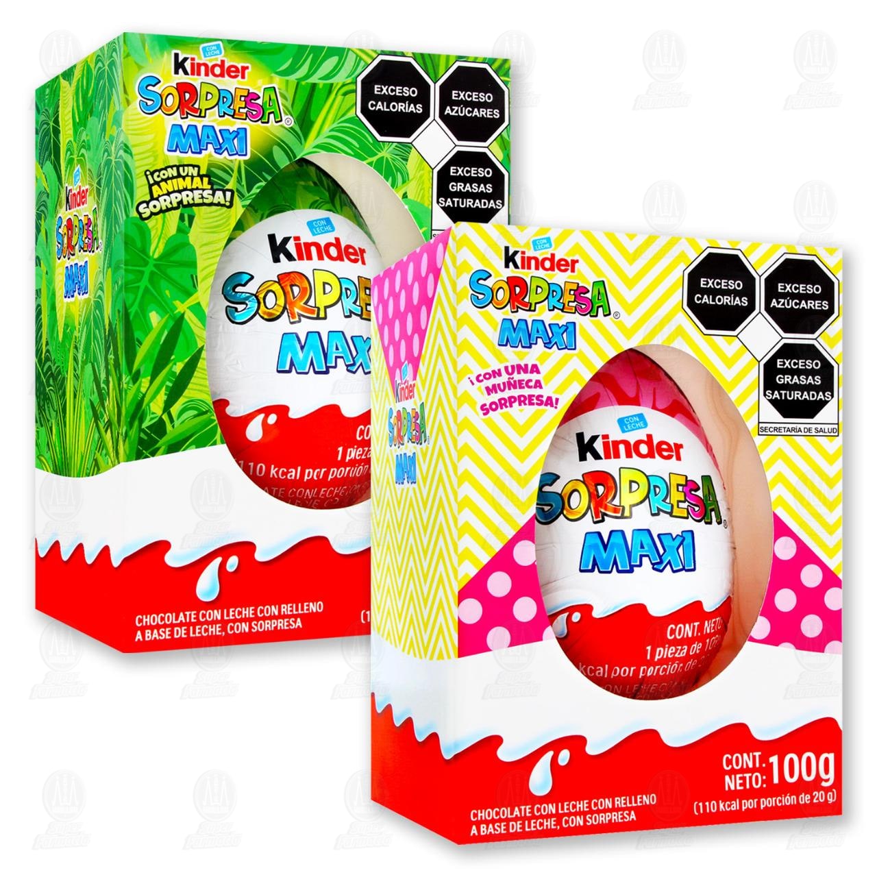Huevo de chocolate Kinder Sorpresa Maxi elaborado con chocolate con leche y relleno a base de leche, incluye una sorpresa en su interior para coleccionar y jugar. Contiene 100 gramos.