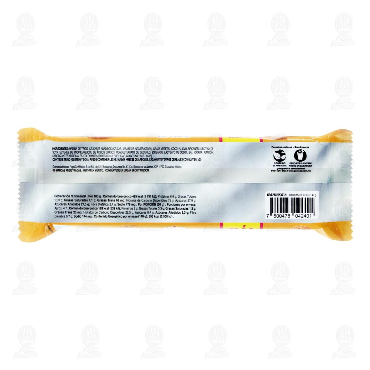Exceso de calorías. Exceso de azúcares. Exceso de sodio. Contiene trigo (gluten) y soya. Puede contener leche, huevo, nueces de árboles, cacahuate y otros cereales con gluten. V20. Consérvese en lugar seco y fresco.Detalles del producto