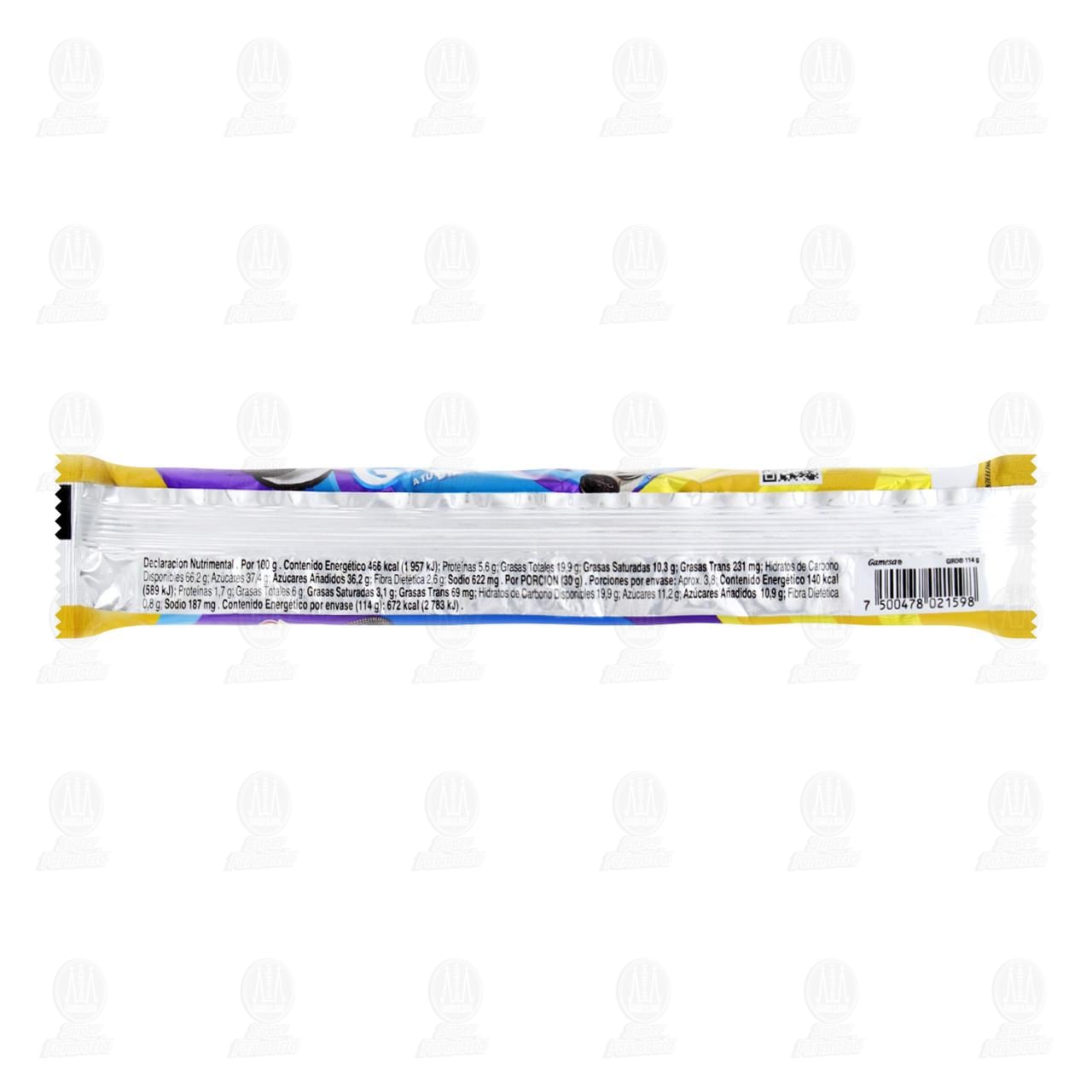 Contiene trigo (gluten), leche y soya. Puede contener huevo, nueces de árboles, cacahuate y otros cereales con gluten. Consérvese en un lugar seco y fresco. Exceso de calorías. Exceso de azúcares. Exceso de grasas saturadas. Exceso de sodio.