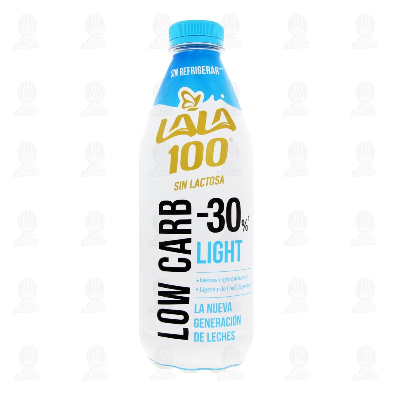 Leche Lala 100 Low Carb -30% Sin Lactosa light semidescremada deslactosada ultrafiltrada ultrapasteurizada, adicionada con vitaminas A y D, reducida en grasa. Botella con 1 litro.