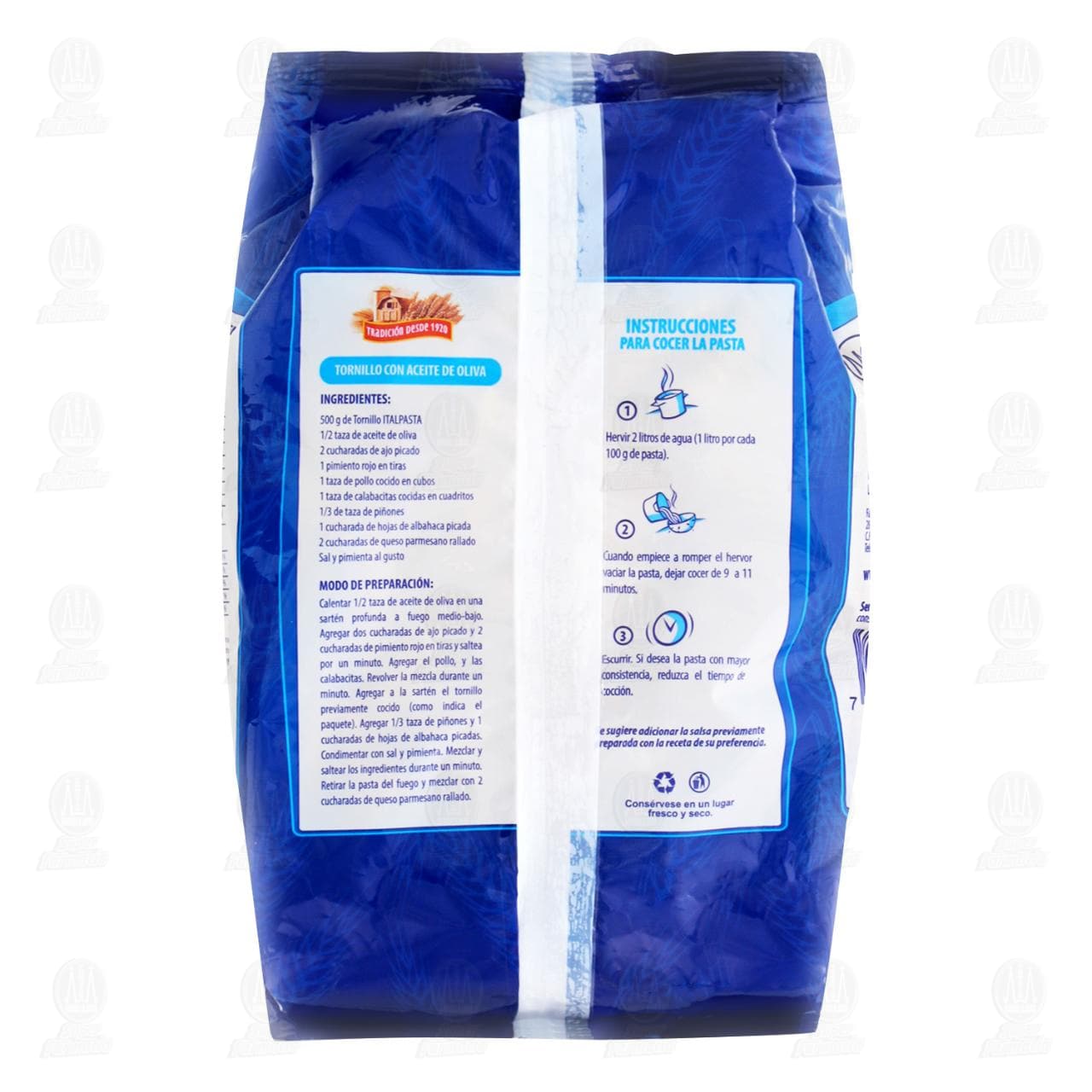 Pasta de Sémola Italpasta Tornillo. Paquete con 500 gramos.