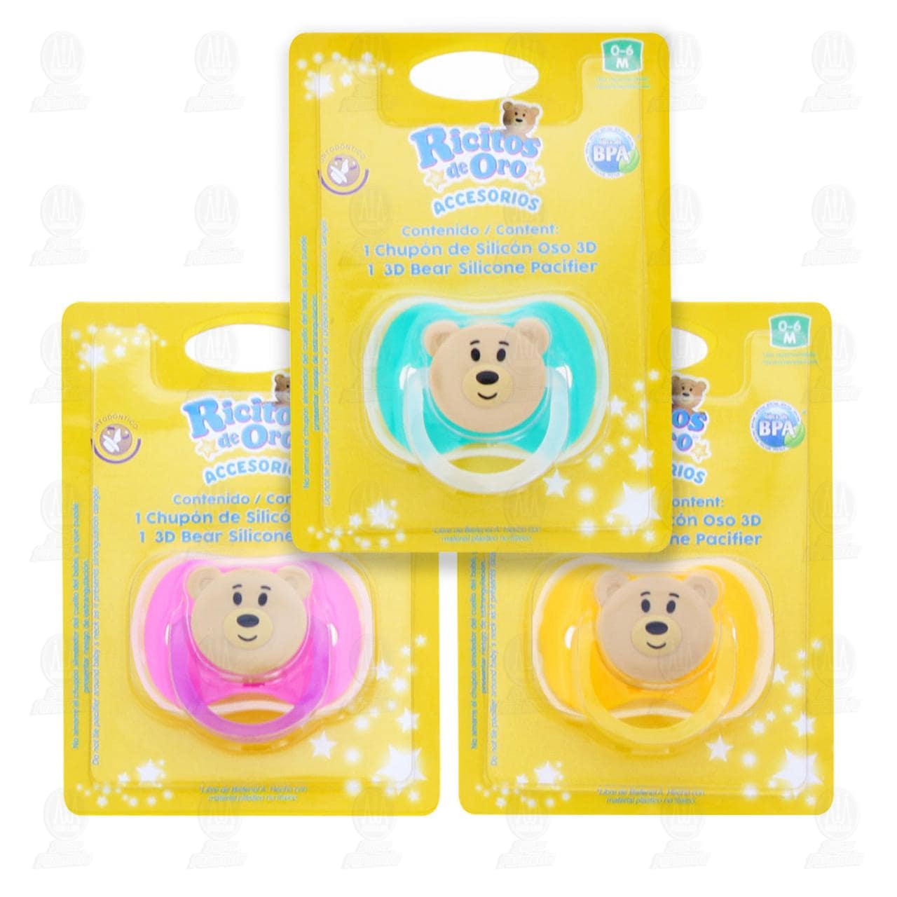 Chupón de silicón Ricitos de Oro Oso 3D, hecho de silicón de grado alimenticio, ideal para llevar dentro de la pañalera, manteniendo limpio el chupón por más tiempo gracias a su caja protectora, varias presentaciones. Contiene 1 pieza.