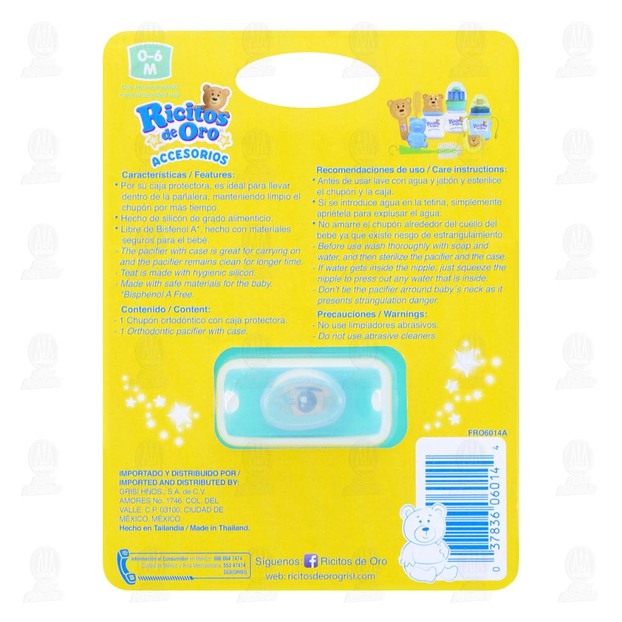 El color o la presentación pueden variar. No use limpiadores abrasivos. No amarre el chupón alrededor del cuello del bebé, ya que existe riesgo de estrangulamiento.