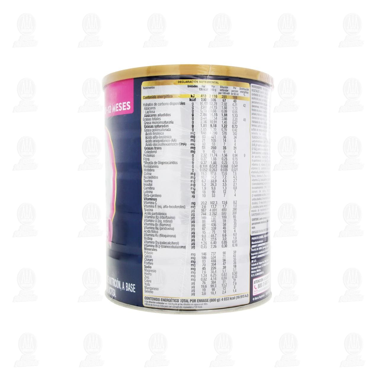 Use de acuerdo con las indicaciones de su médico. Al preparar la fórmula, es importante que siga las instrucciones de higiene, preparación y almacenamiento. No seguir estrictamente las instrucciones puede ocasionar daño severo. Las fórmulas en polvo para lactantes no son estériles, por lo que no deben administrarse a lactantes pretérmino o que puedan tener problemas en el sistema inmunológico, a menos que sea bajo la dirección y supervisión médica. Si usted prepara más de una porción de la fórmula, debe mantenerse refrigerada entre 2-4°C y debe ser consumida dentro de las siguientes 24 horas. 1. Lave bien todos los utensilios que se usarán para la toma. Después de enjuagar el jabón de todos los utensilios hiérvalos durante 5 minutos y déjelos en lugar limpio. 2. Hierva suficiente agua por 5 minutos y déjela enfriar hasta que quede tibia. En caso de no contar con ésta se podrá utilizar agua purificada a temperatura ambiente. 3. vierta la cantidad correcta de agua tibia hervida previamente, dentro del envase esterilizado. 4. Llene la cuchara medidora incluida en la lata, presionándola contra la misma. Retire el exceso de polvo en el borde recto de un cuchillo limpio. 5. Agregue una medida de polvo (8.9 gr) por cada 60 ml (2oz fl) de agua en el envase. Mezcle hasta que el polvo este completamente disuelto. Compruebe la temperatura y alimente al lactante. 6. Una vez iniciada la alimentación, úsela dentro de la hora siguiente a su preparación o deséchela. De preferencia prepare sólo una toma a la vez.Advertencias