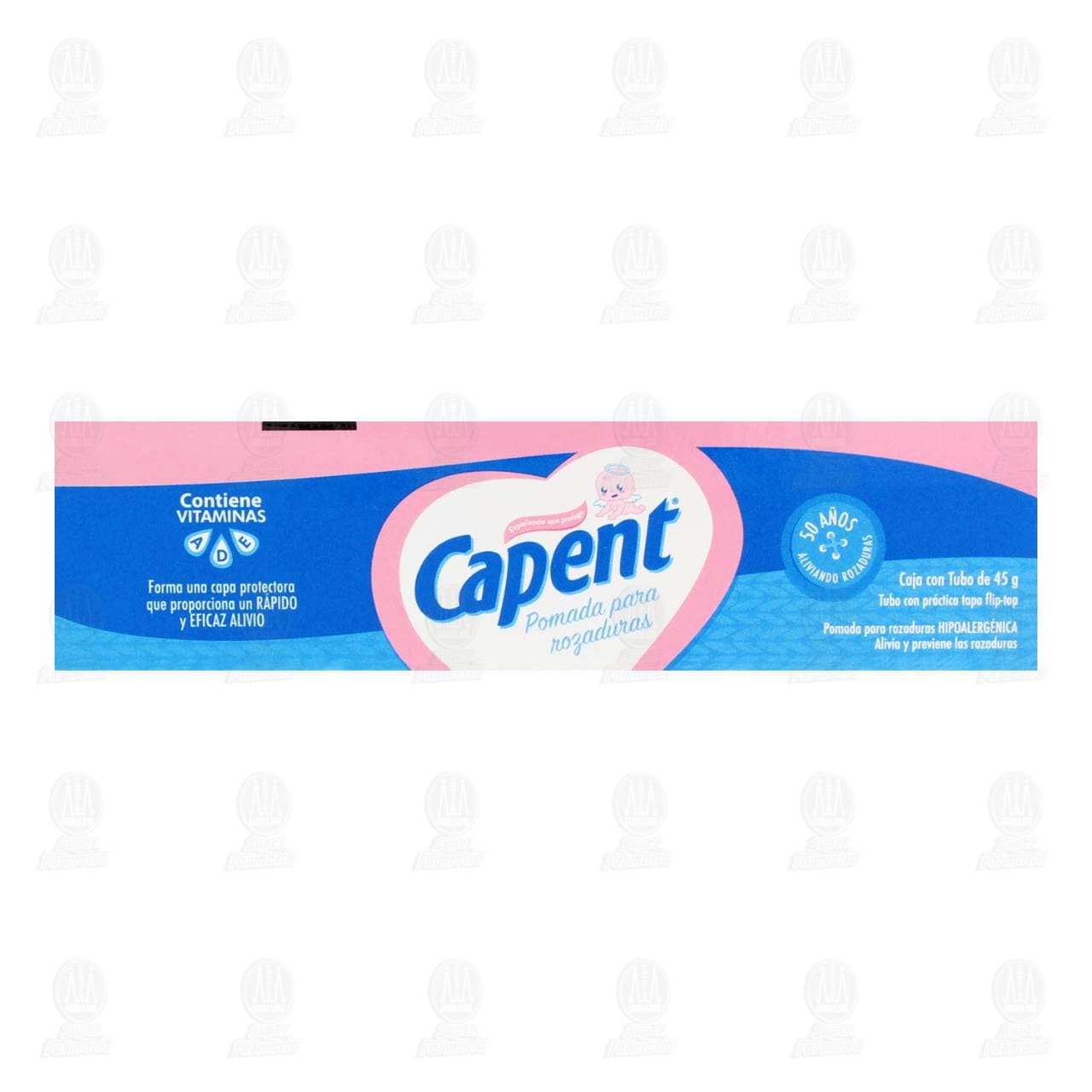 Pomada para rozaduras Capent, exclusiva fórmula hipoalergénica con vitaminas A, D y E que protege la delicada piel de su bebé de las rozaduras, proporcionando un rápido y eficaz alivio, incluye práctica tapa flip-top. Contiene 45 gramos.