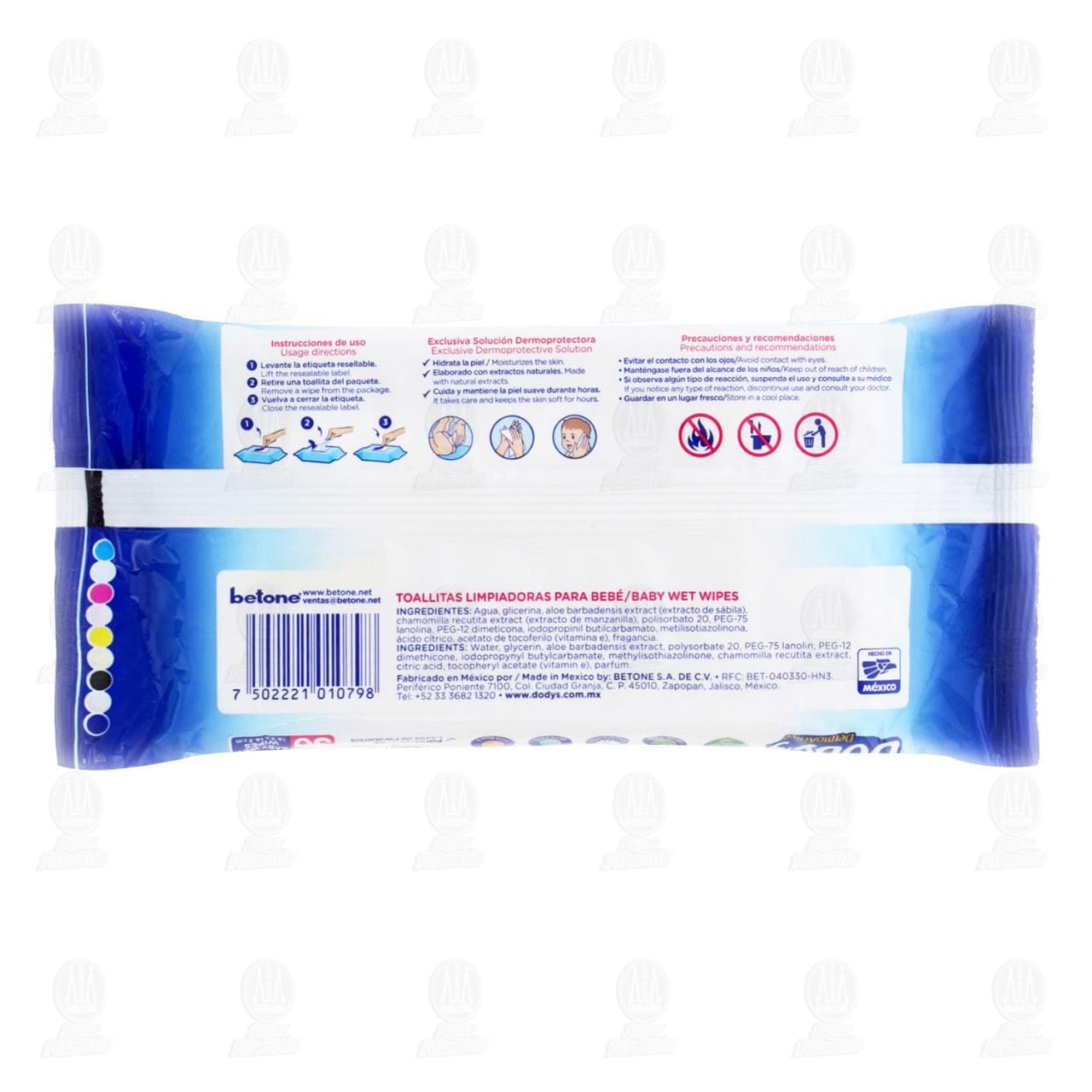 Toallitas húmedas para bebé Dody's Dermo Active hipoalergénicas, con sábila y manzanilla, vitamina E y glicerina, ahora acolchonaditas y más suavecitas. Paquete con 30 piezas.