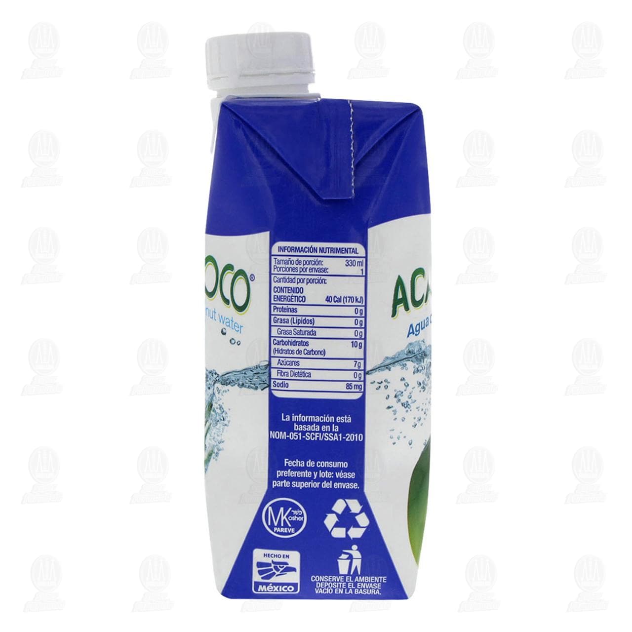 Agua de coco Calahua Acapulcoco. Envase con 330 mililitros.