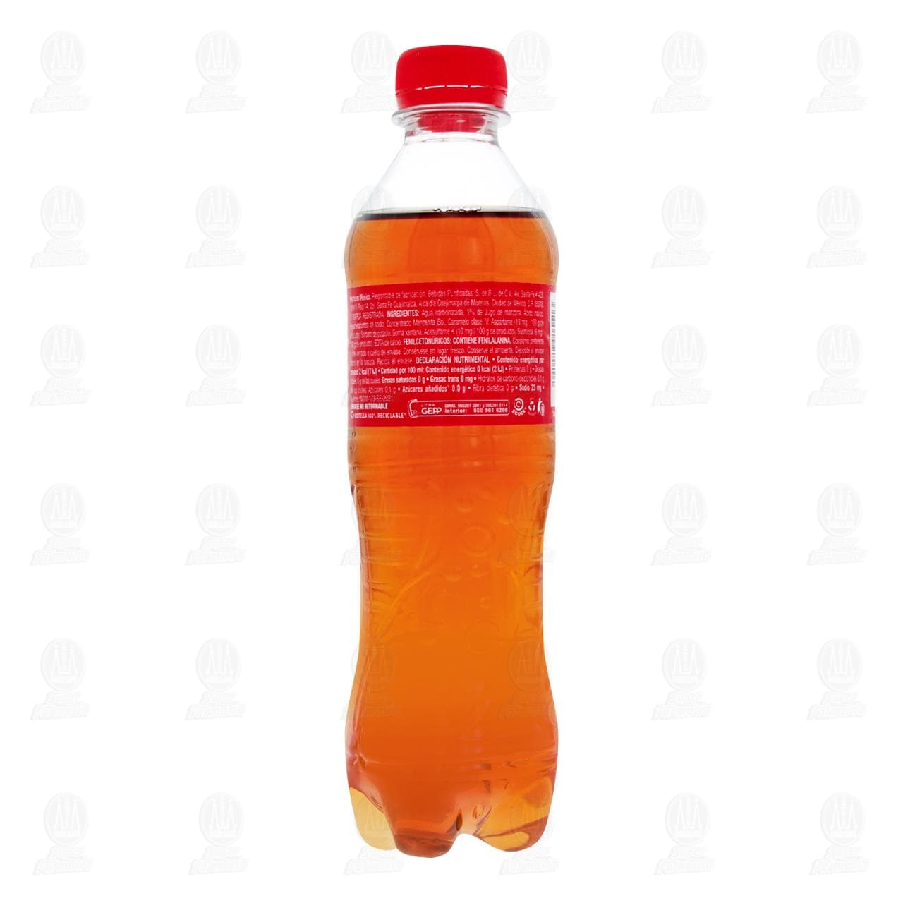 Refresco Manzanita Sol con 1% de Jugo de Manzana, Sin Calorías. Contiene 400 mililitros.
