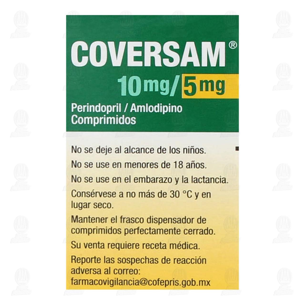 Propiedades Farmacocinéticas: La tasa y velocidad de absorción de perindopril y amlodipino a partir de COVERSAM® no son significativamente diferentes, respectivamente, de la tasa y velocidad de absorción de perindopril y amlodipino a partir de las formulaciones de los comprimidos individuales.