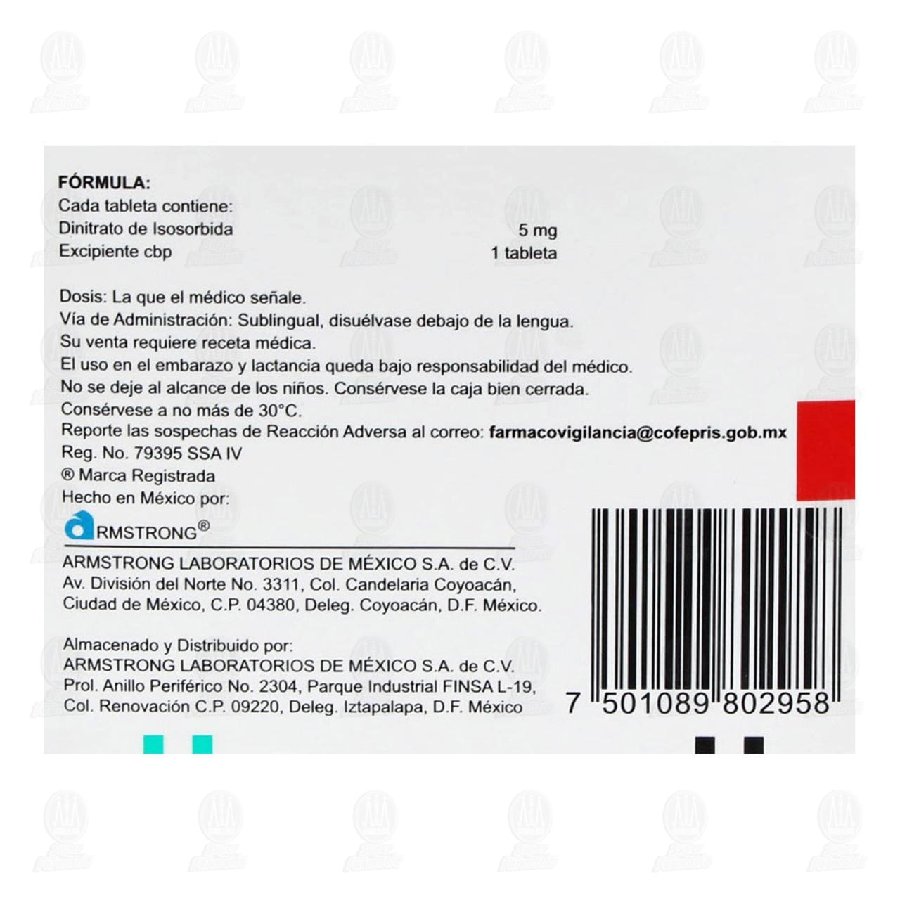 ISORBID Tableta Sublingual: Caja con 40 tabletas de 5 mg.