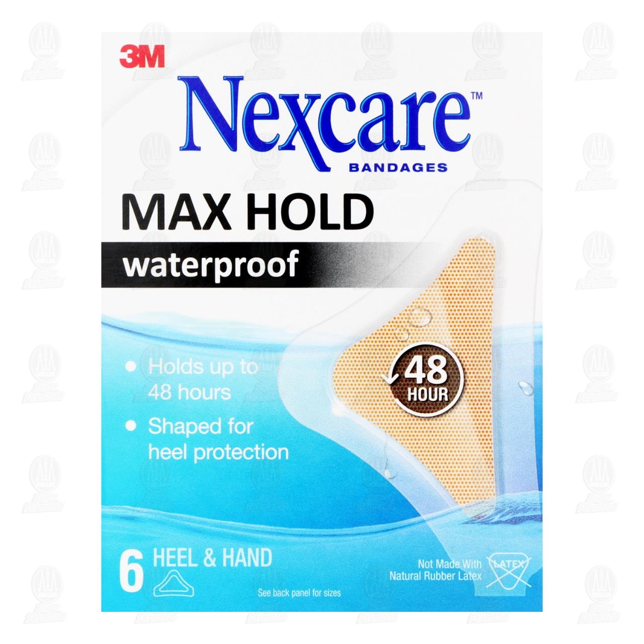 3M Nexcare venditas impermeables Max Hold para manos y talones, diseñadas para ofrecer hasta 48 horas de fijación continua. Contiene 6 piezas de 44 mm x 71 mm.