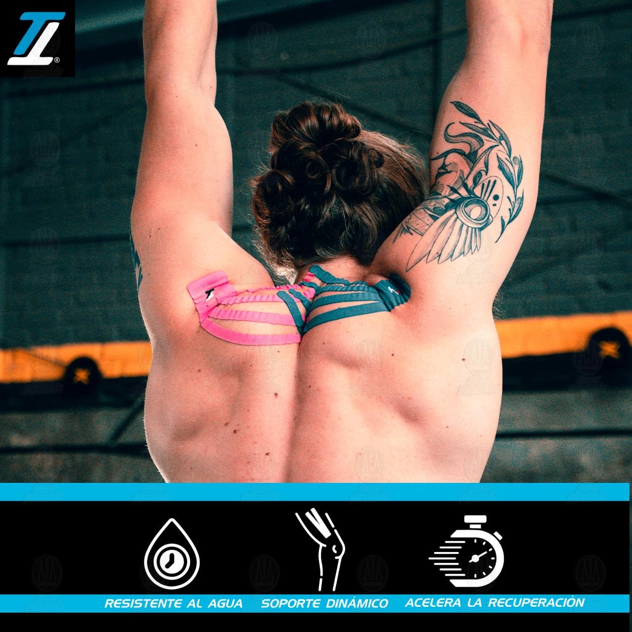 Venda Kinesiológica Target Tape Color Azul. Contiene 16 piezas (16 Tiras).