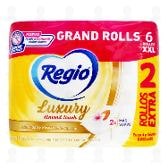 Papel Higiénico Regio Almond Touch luxury, suavidad y resistencia superior. Paquete con 4 + 2 rollos extra de 180 hojas dobles. Ver detalles
