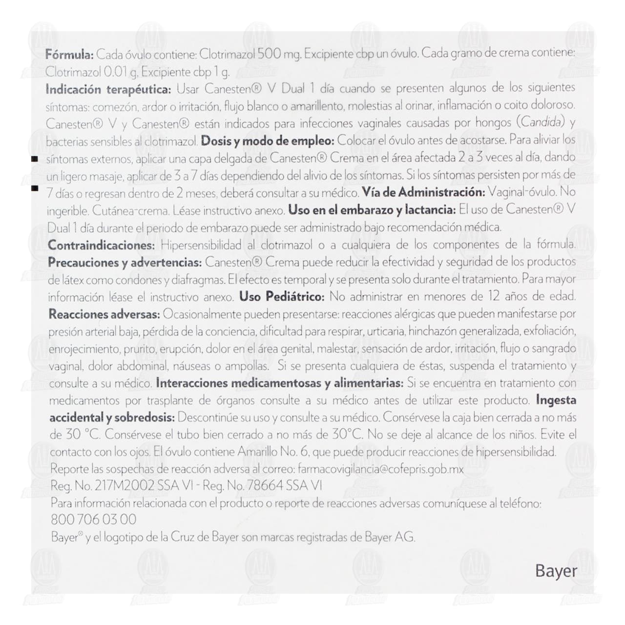 • Canesten V Dual 1 Día para aliviar los síntomas de las infecciones vaginales como: ardor y comezón vaginal, flujo, enrojecimiento, inflamación y dolor.