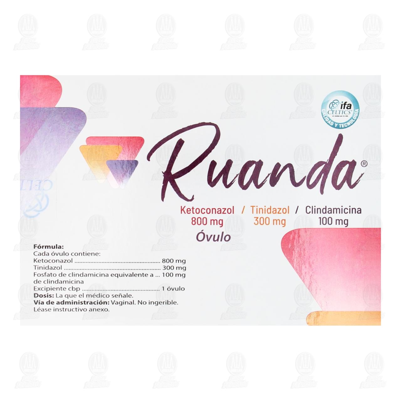 Ruanda 800 mg / 300 mg / 100 mg, 3 Óvulos. (Ketoconazol, Tinidazol, Clindamicina)