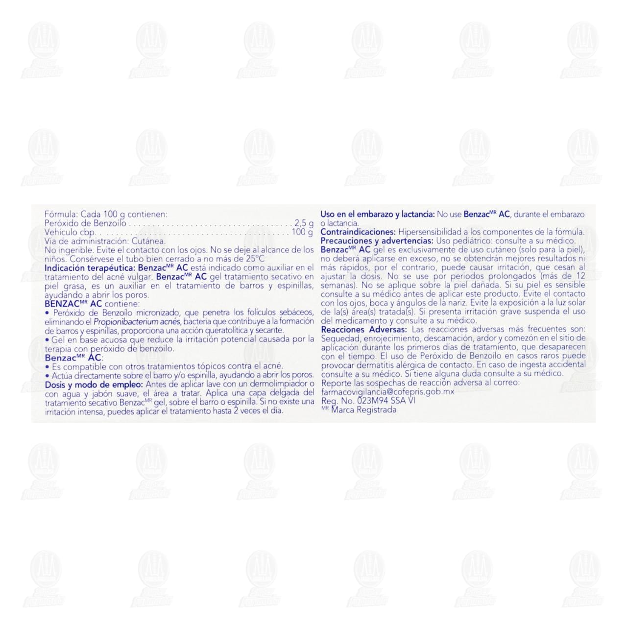 Benzac AC Gel 2.5% tratamiento secativo en gel para Barros y Espinillas. Contiene 60 gramos (Peróxido de benzoílo)