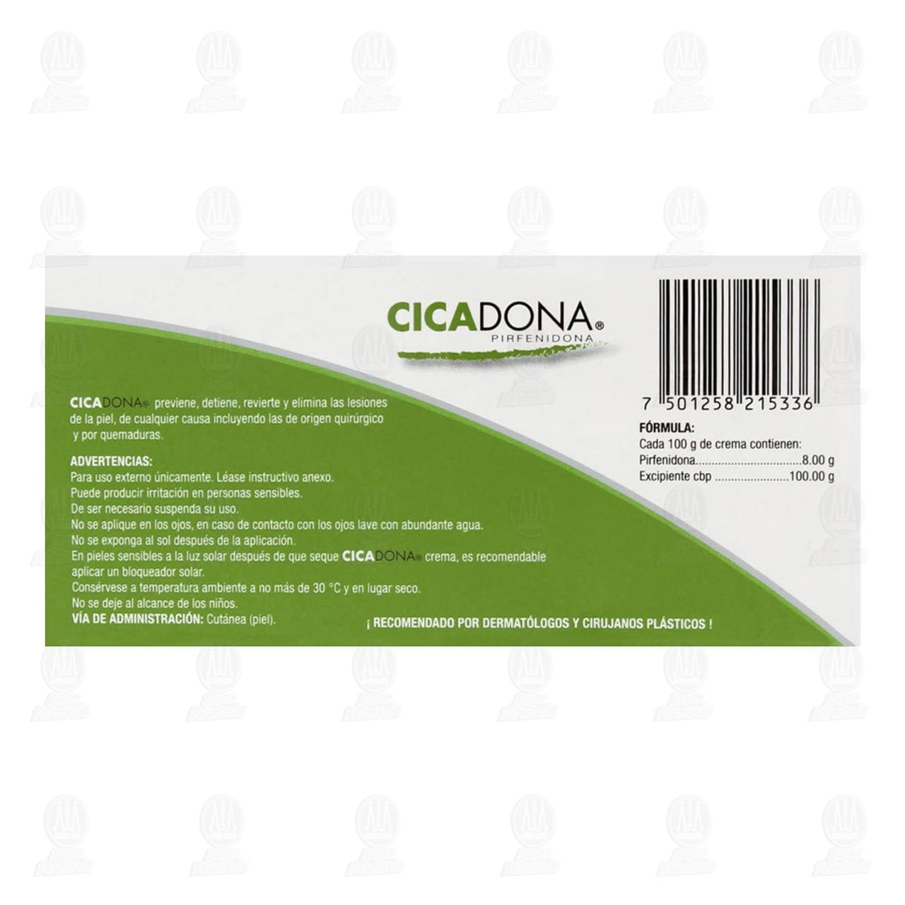 Crema auxiliar para el tratamiento corrección y restauración de las cicatrices de la piel sin importar su origen o evolución, cicatrices hipertróficas/queloides o evitar su aparición después de un procedimiento quirúrgico (Pirfenidona)