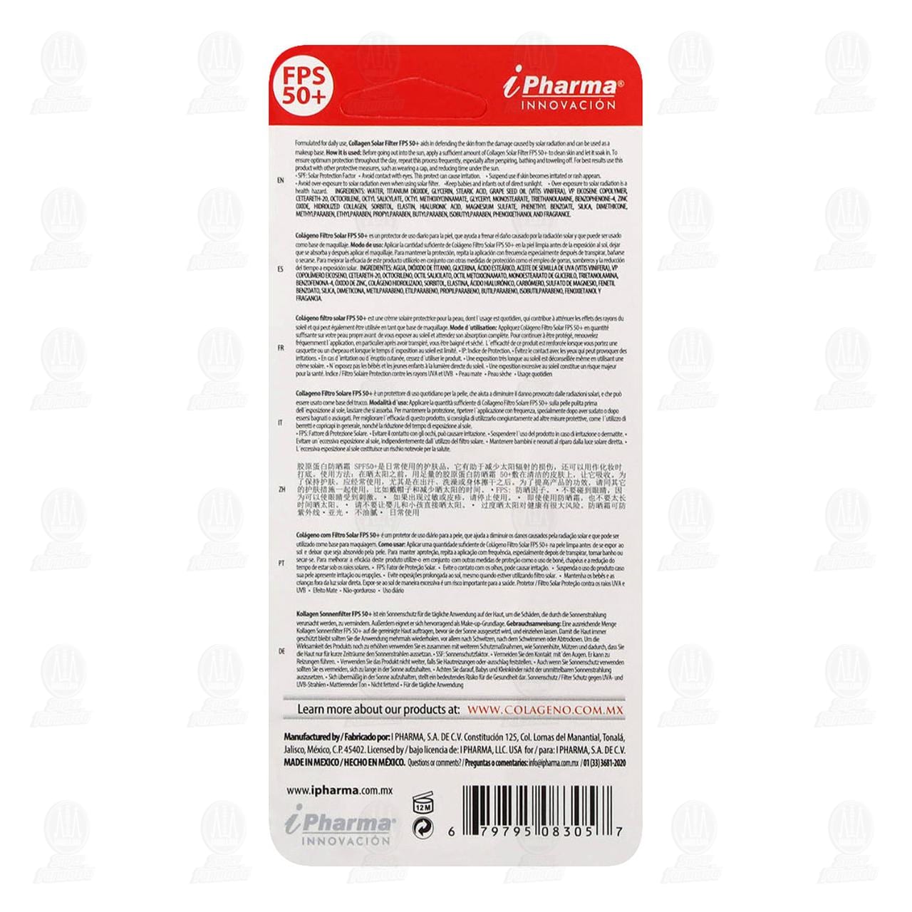 - Colágeno filtro solar FPS 50 + es un perfecto de uso diario para la piel, que ayuda a frenar el daño causado por la radiación solar y que puede ser usado como base de maquillaje.
