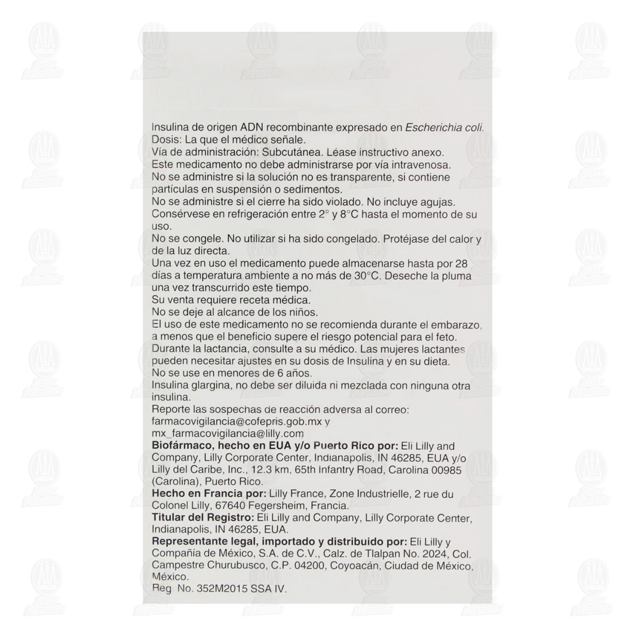 Abasaglar KwikPen 100U/ml, Contiene 5 Plumas Precargadas de 3 mililitros (Insulina Glargina)