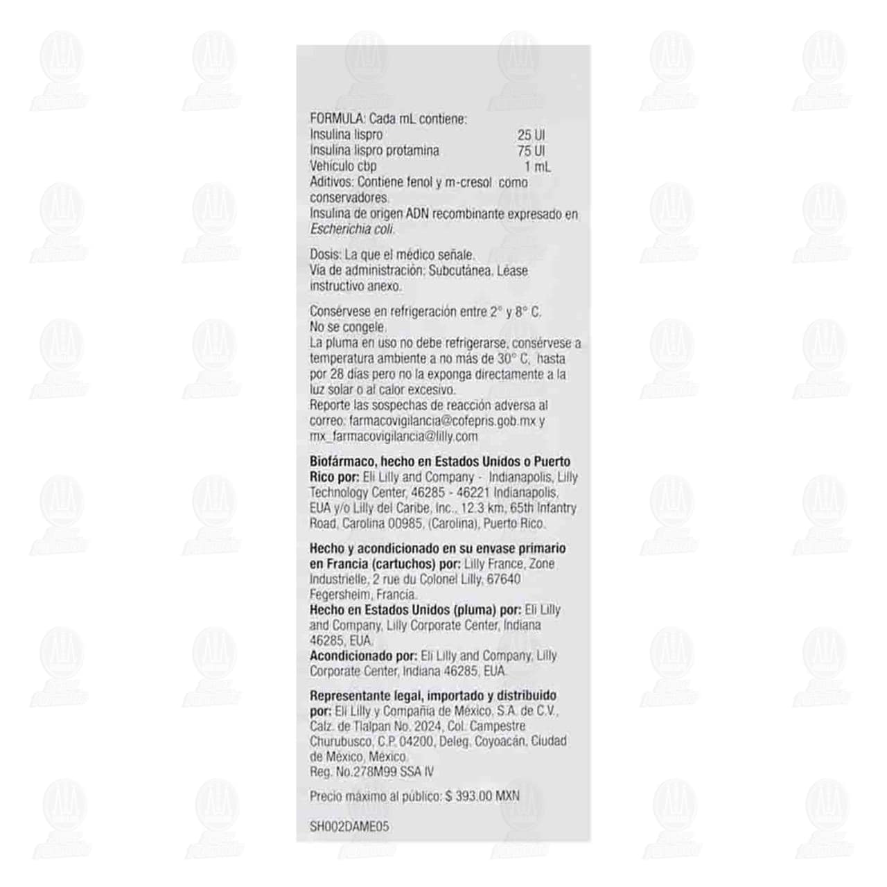 Humalog Mix 25 KwikPen 100UI/ml Suspensión Inyectable Pluma Precargada. Contiene una Pluma Precargada con un Cartucho de 3 mililitros (Insulina lispro, Insulina lispro protamina)