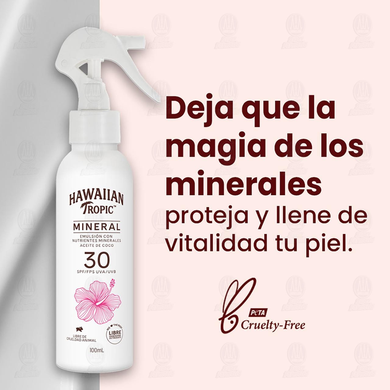 Emulsión Hawaiian Tropic Mineral 30 FPS, con Nutrientes minerales Aceite de coco. Ayuda a prevenir las quemaduras solares, de protección alta. Envase con 100 mililitros.