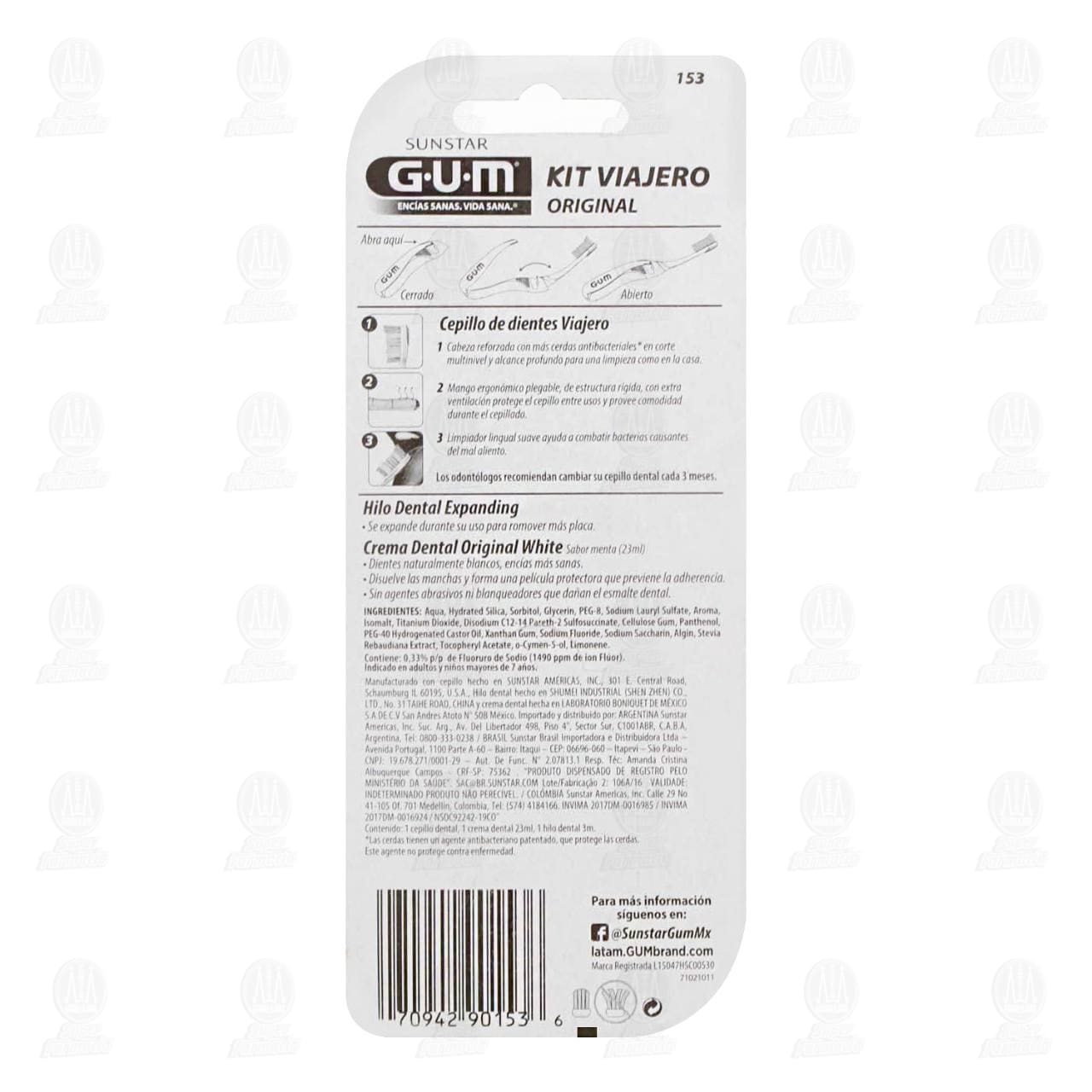 Kit dental viajero Sunstar Gum Original, limpieza como en la casa e ideal para llevar en viajes, trabajo y deportes. Contiene 3 piezas (1 cepillo dental + 1 crema dental de 23 mililitros + 1 hilo dental).
