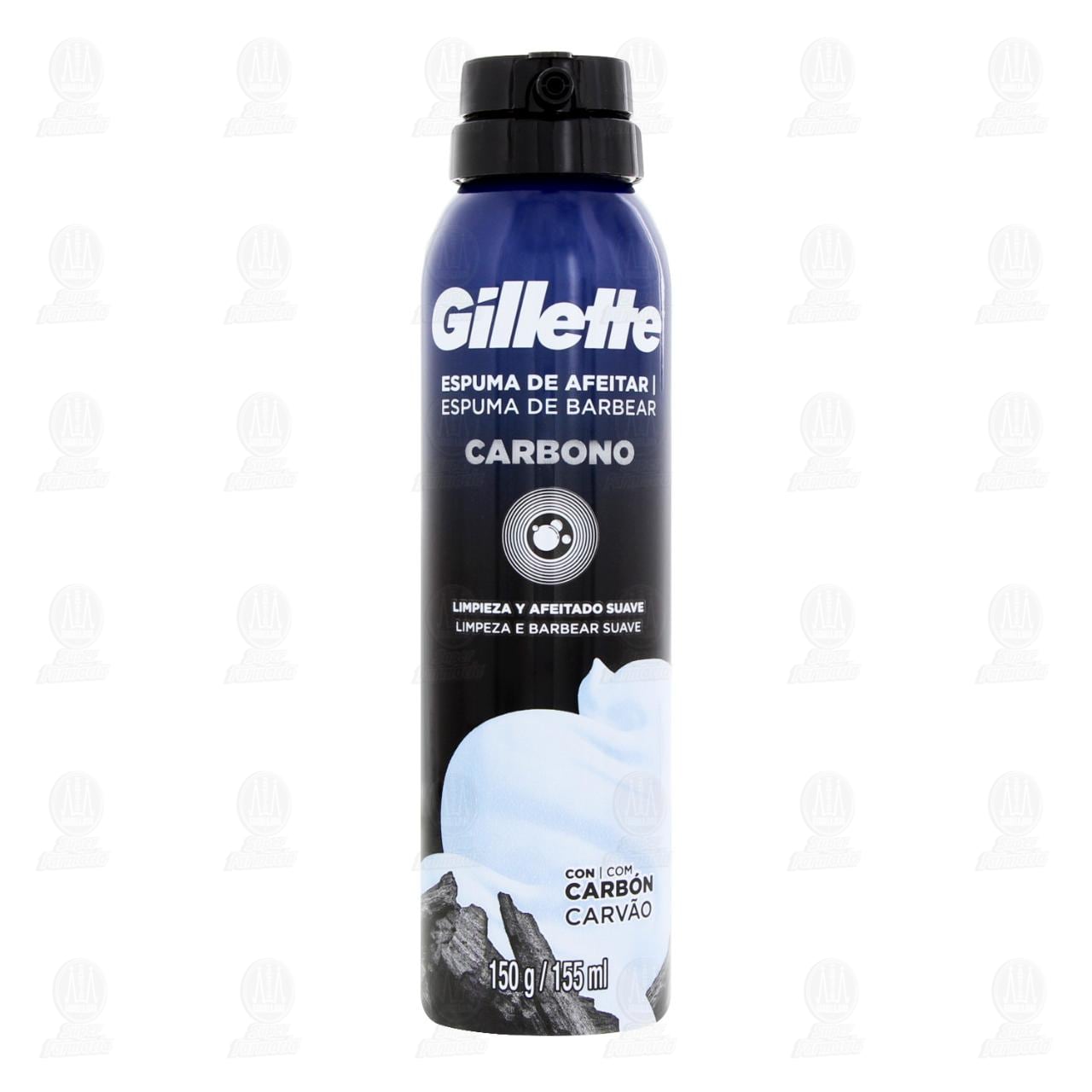Espuma de Afeitar Gillette Carbono, Limpieza y Afeitado Suave, Contiene 155 mililitros.