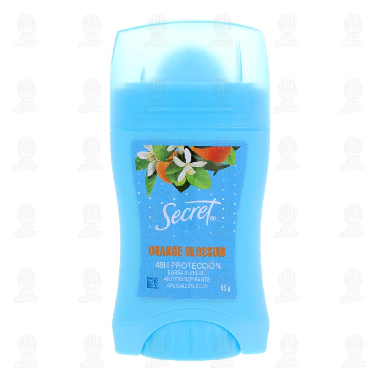 Antitranspirante Secret Orange Blossom en barra para mujer, aplicación seca, 48 horas de protección. Envase con 45 gramos.