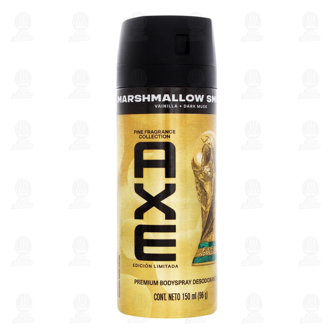 Desodorante Premium Body Spray Axe Marshmallow Smoke en aerosol edición limitada con notas de vainilla y dark musk, con tecnología de destrucción del mal olor y frescura por hasta 72 horas. Contiene 150 mililitros.