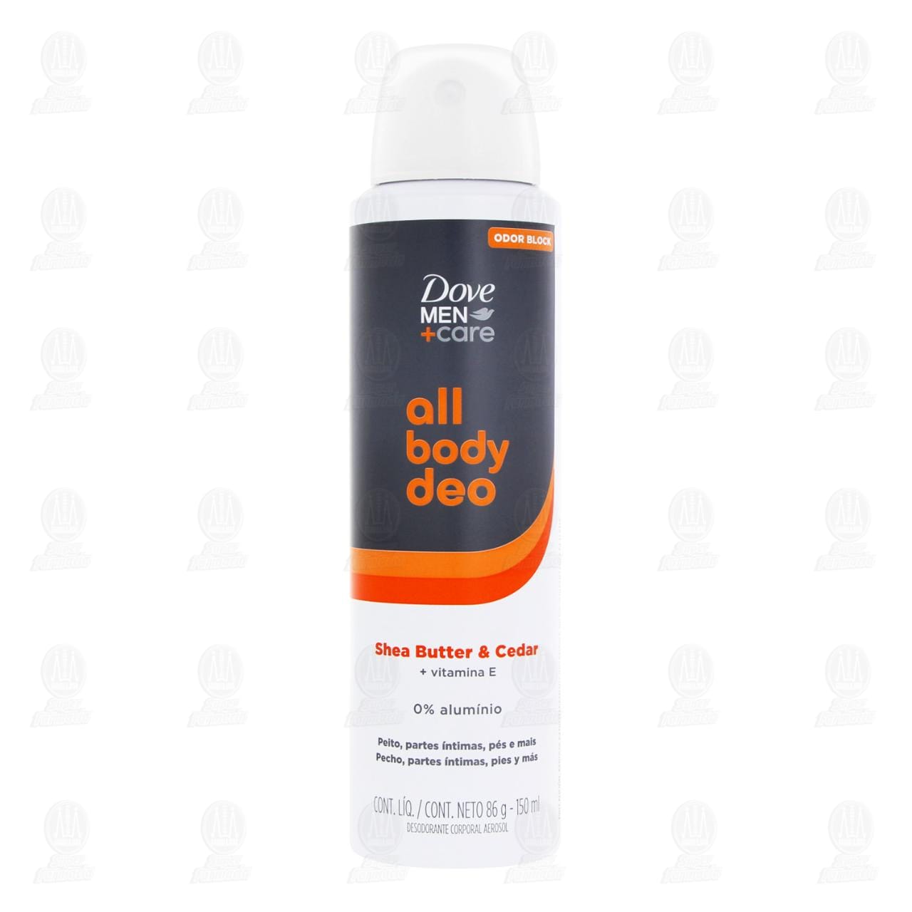 Desodorante Corporal Dove Men +Care All Body Deo en Aerosol Shea Butter & Cedar enriquecido con vitamina E, para pecho, partes íntimas, pies y más. Envase con 150 mililitros.