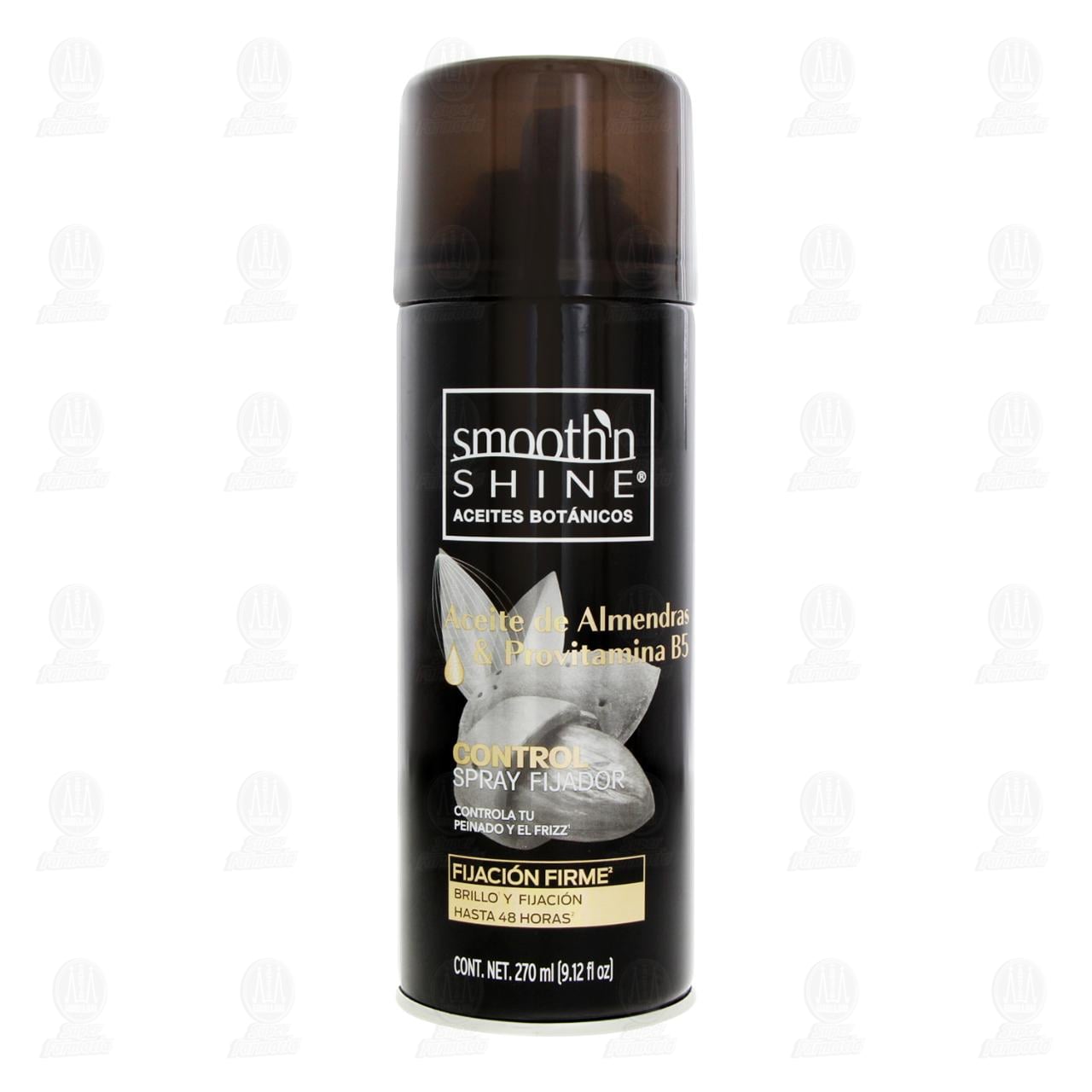 Spray Fijador Smooth'n Shine Control con Aceite de Almendras & Provitamina B5 Controla tu Peinado y el Frizz de tu Cabello Hasta por 48 Horas. Envase con 270 mililitros.