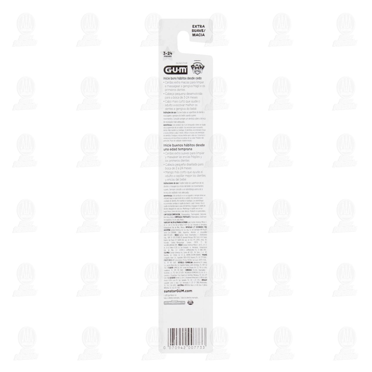 Cepillo Dental Gum Paw Patrol con cerdas extra suaves para bebés de 3 a 24 meses, Cabeza pequeña y mango corto para facilitar el cepillado con ayuda de un adulto. Contiene 1 pieza.