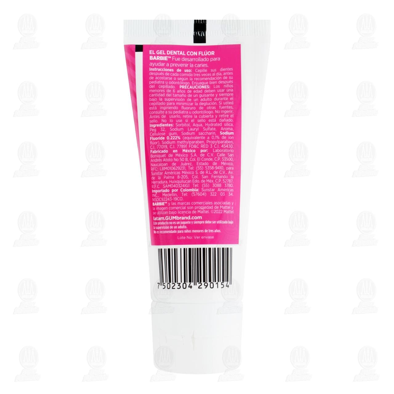 Gel Dental Infantil Gum Barbie Sabor Bubble Gum, 75 ml.