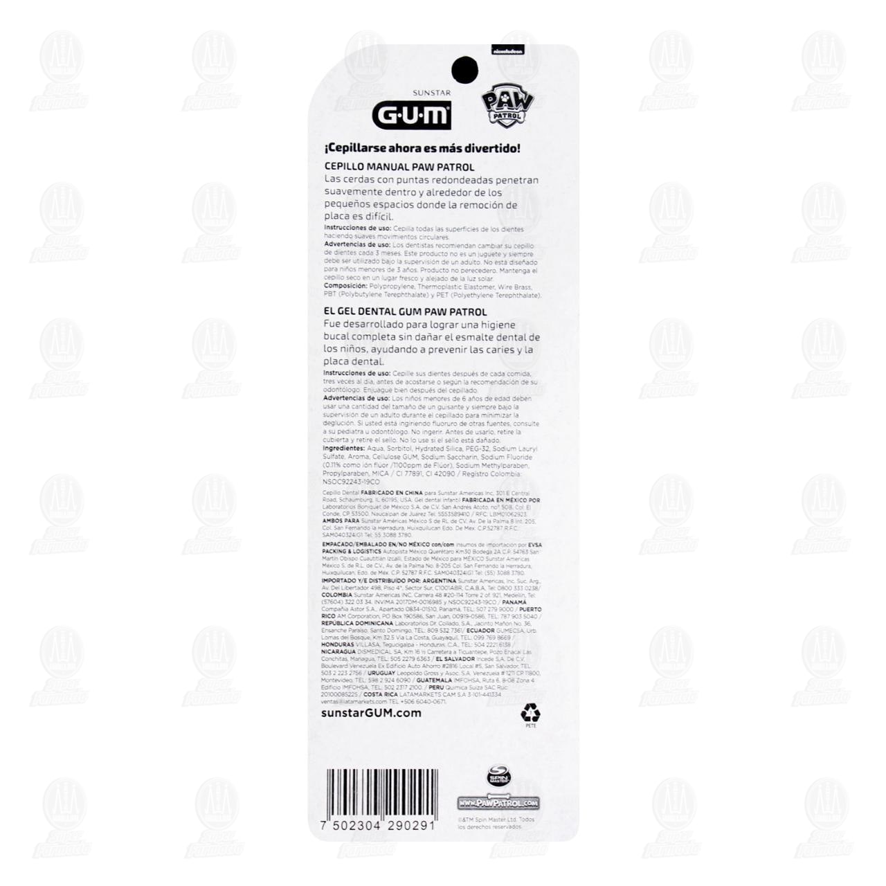 Pack Gum Paw Patrol Cepillo Dental Infantil Suave + Gel Dental Infantil, 2 pzas.