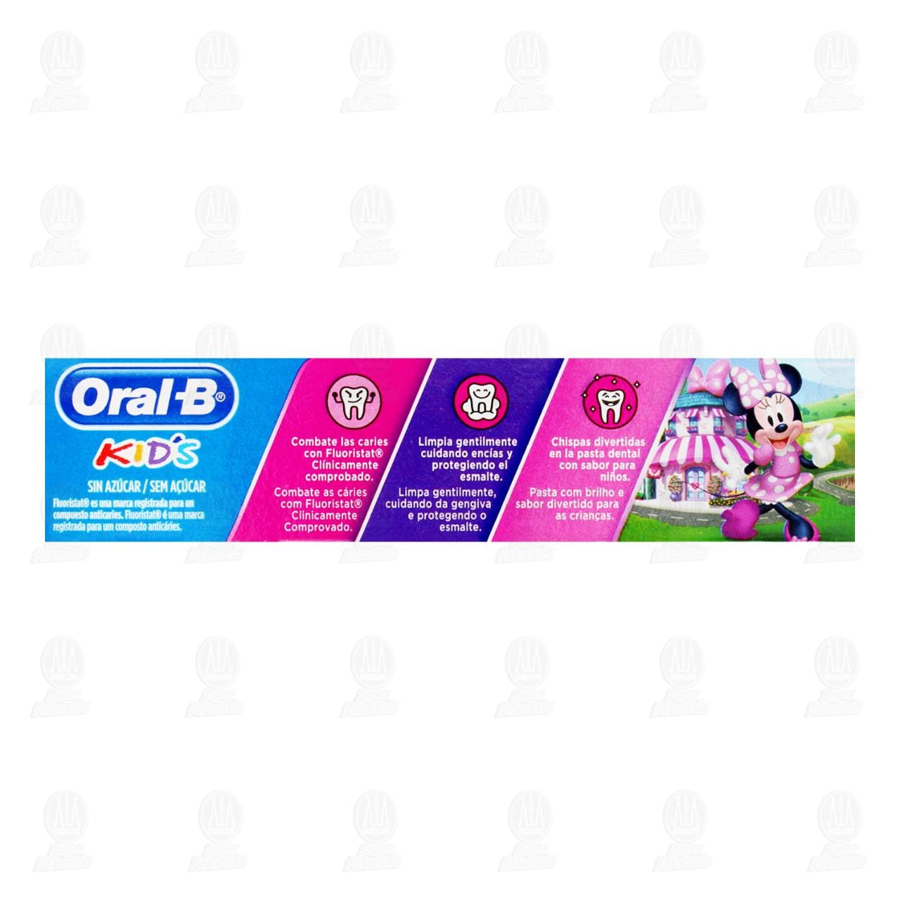 Advertencias: permitido su uso en menores de 6 años. Para niños menores de seis (6) años, usar una pequeña cantidad del tamaño de un grano en el cepillado. La supervisión de un adulto es recomendable para evitar el exceso. No ingerir. Mantener fuera del alcance de los niños. Si está usando suplementos de flúor, consulte a su dentista. Contiene fluoruro de sodio. No contiene azúcar.Detalles del producto
