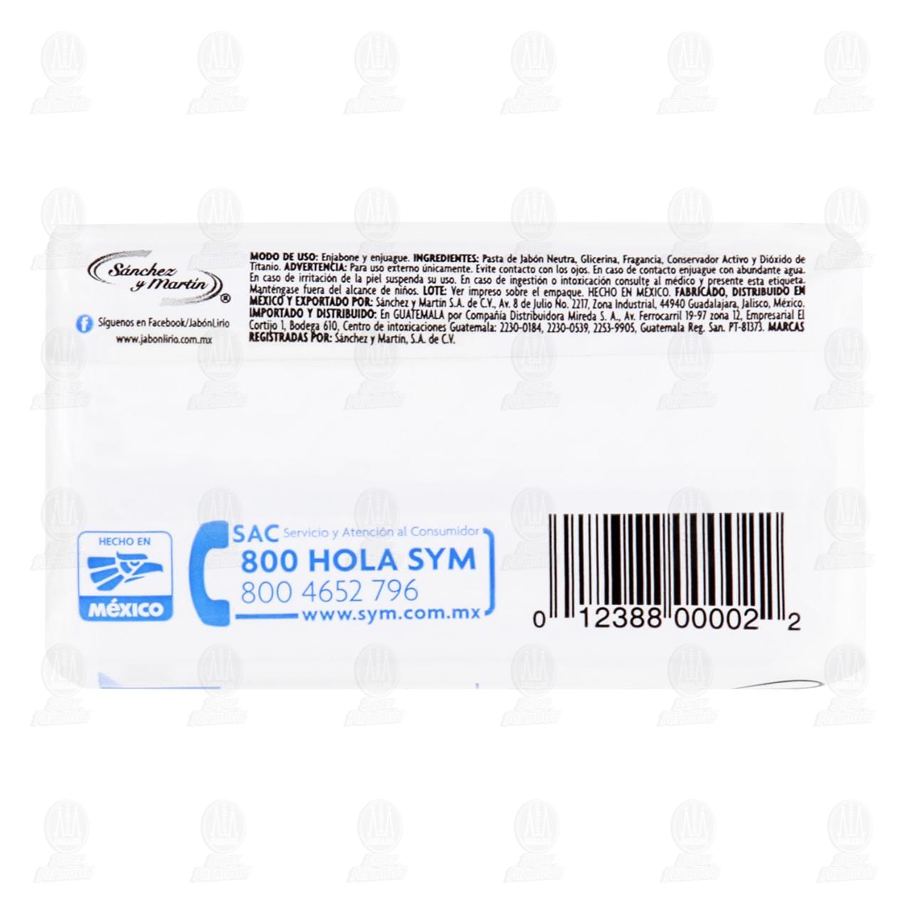 Jabón de tocador Lirio Neutro Cuida tu piel. Contiene 150 gramos.