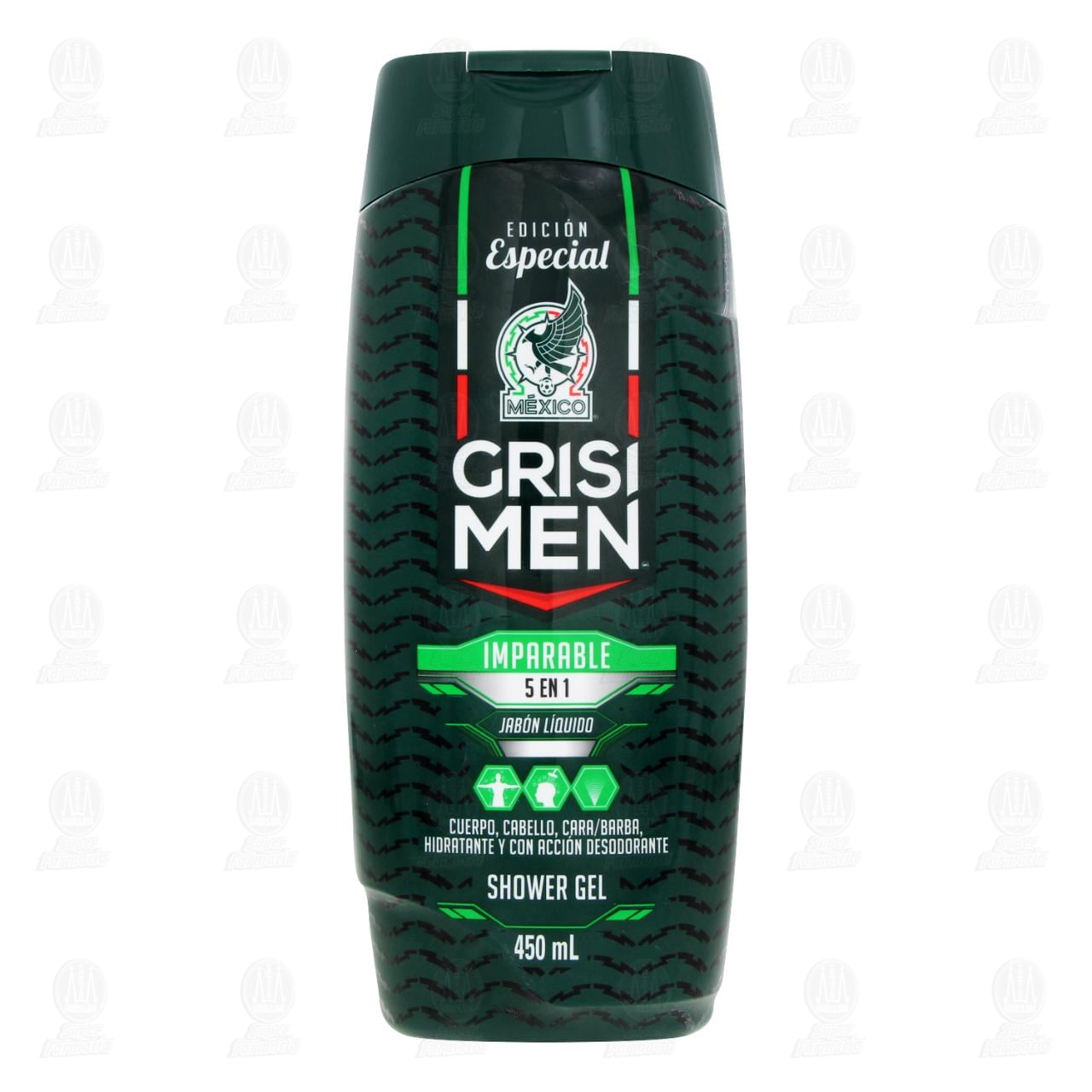 Jabón Líquido Grisi Men Imparable 5 en 1 edición especial para cuerpo, cabello, cara/barba, hidratante y con acción desodorante. Contiene 450 mililitros.