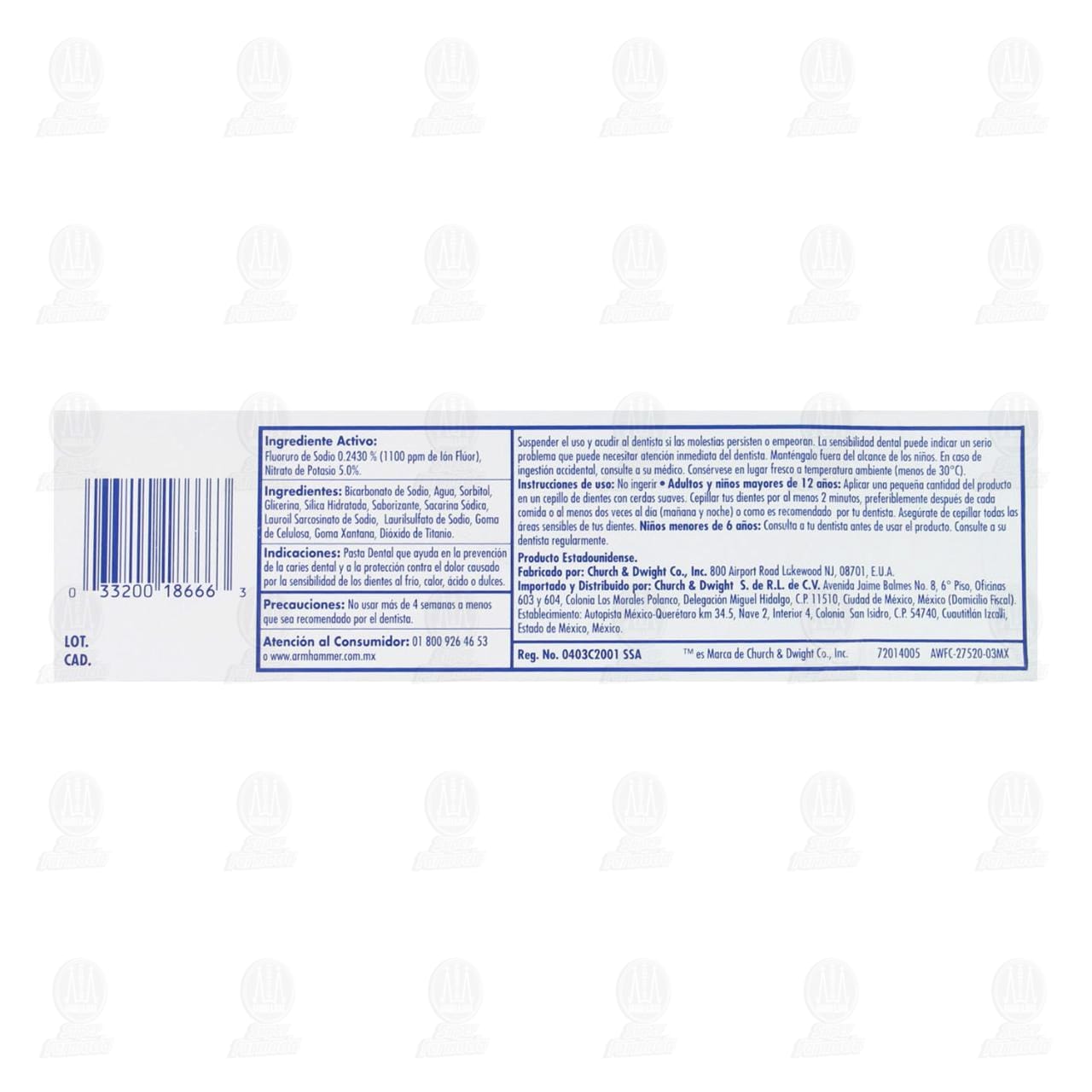 Pasta dental Arm & Hammer Sensitive Soft Whitening, ayuda al alivio sin prescripción con una fórmula de baja abrasión que es suave con el esmalte, con bicarbonato de sodio. Contiene 127 gramos.