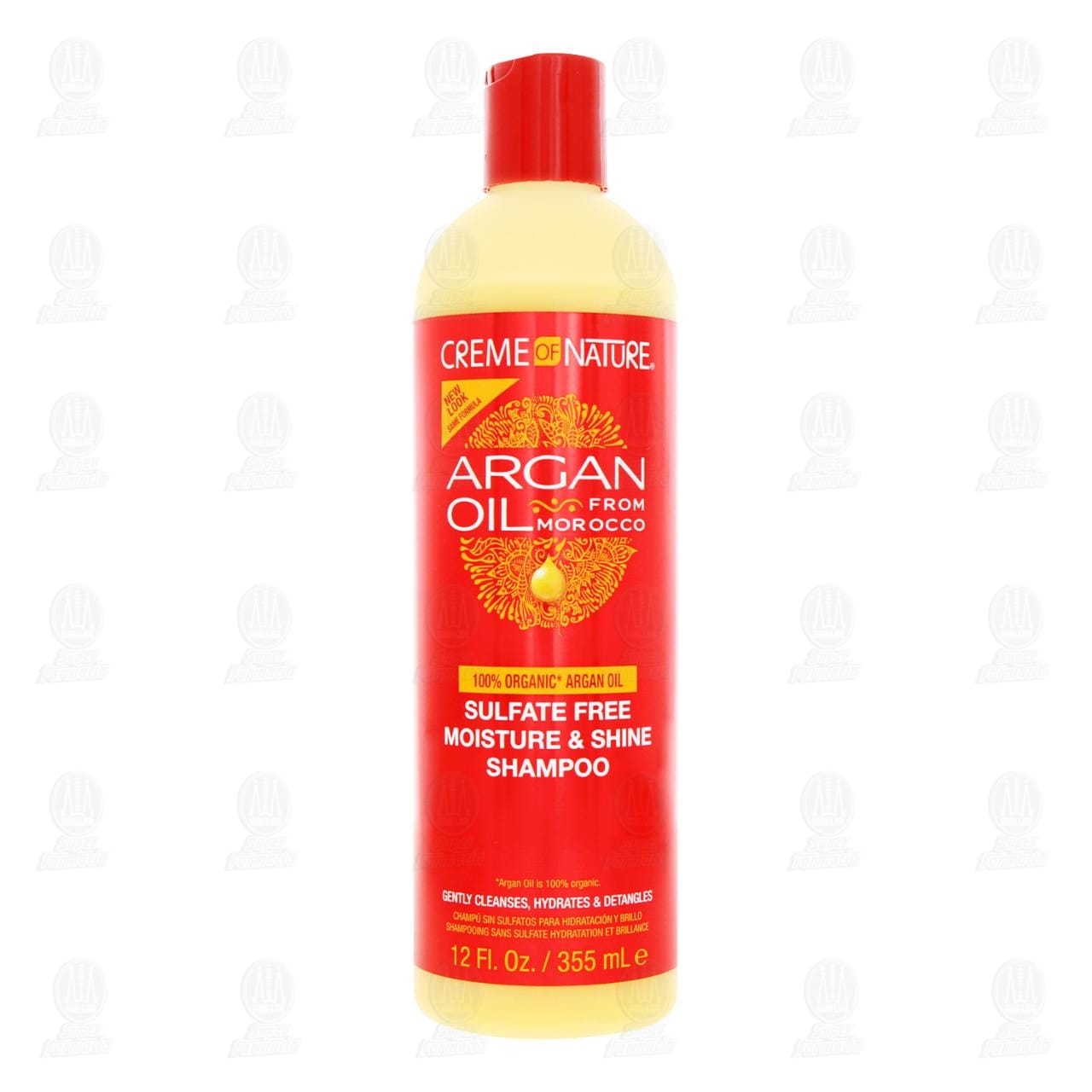 Shampoo Creme Of Nature Argan Oil Moisture & Shine con aceite de argán 100% ecológico procedente de marruecos para un exotic shine y una hidratación nutritiva. Contiene 355 mililitros.