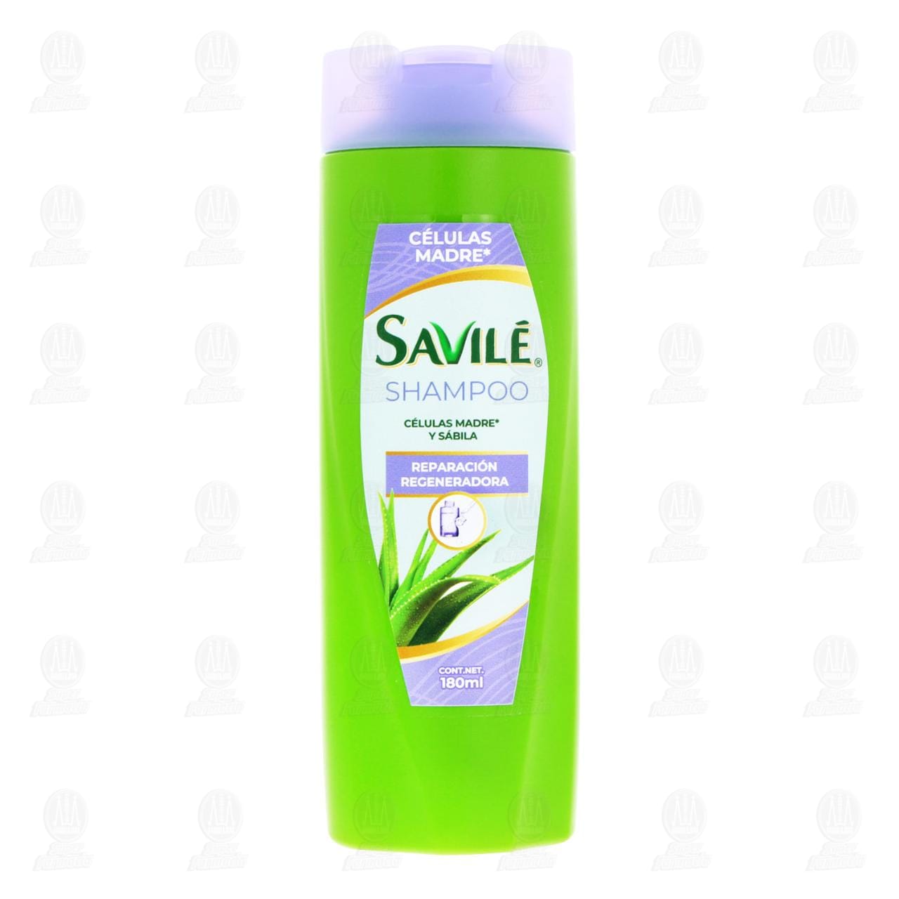 Shampoo Savilé Células Madre y Sábila, Ayuda a que tu Cabello Tenga un Nuevo Comienzo Regenerando y Reparando Hasta el Cabello más Dañado Haciendo que Luzca Fuerte y Radiante. Envase con 180 mililitros.