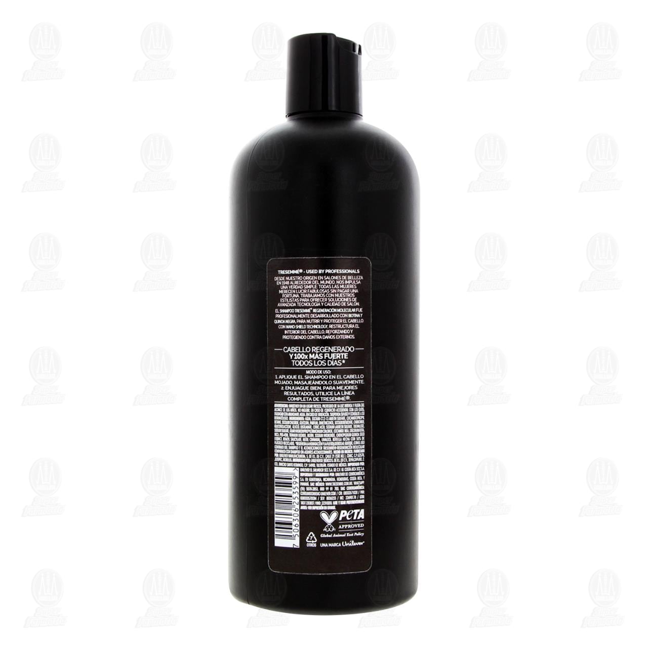 Shampoo Tresemmé Regeneración Molecular con Biotina & Quinoa Negra, Fortalece la Estructura Interna para Cabello 100x más Fuerte. Envase con 715 mililitros.