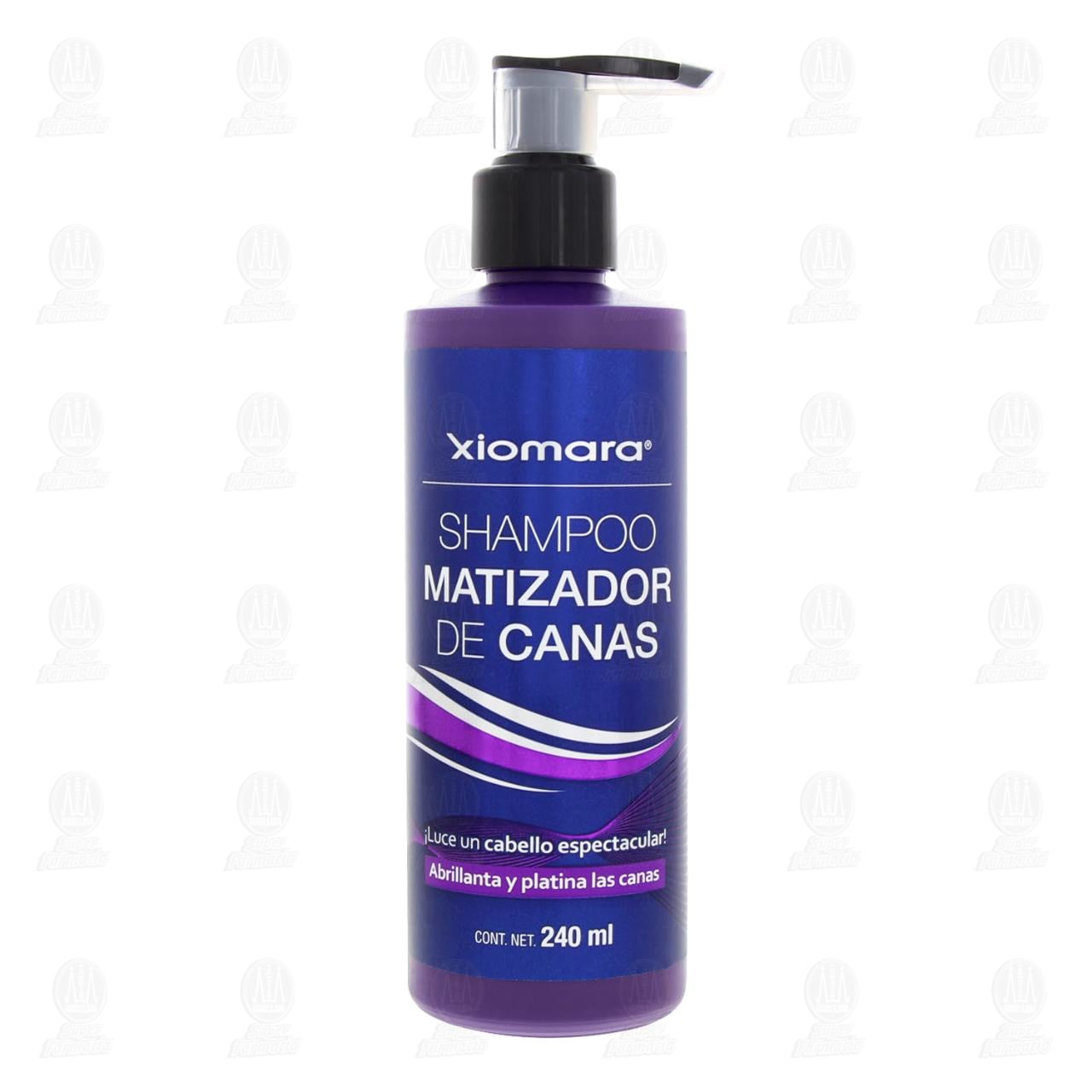 Shampoo Xiomara Matizador de Canas, aporta acondicionamiento y brillo, y da un efecto platinado a las canas. Envase con 240 mililitros.