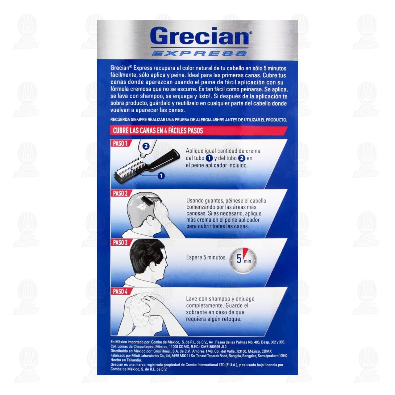 Lea y siga las instrucciones del folleto adjunto. Precauciones: Si alguna vez ha experimentado cualquier tipo de reacción a un tinte colorante, no utilice éste o cualquier otro tinte colorante. Los tintes colorantes para el cabello pueden causar reacciones alérgicas que, en muy raros casos, pueden ser severas. Lea y siga las instrucciones. Este producto no debe ser usado para/por menores de 16 años. Los tatuajes temporales de Henna Negra pueden aumentar su riesgo de alergia. Antes de utilizar una prueba de alergia preliminar 48 horas antes, de acuerdo al folleto adjunto. No use éste ni cualquier otro tinte colorante si: Tiene alguna erupción cutánea en el rostro o el cuero cabelludo sensible, irritado o dañado. Alguna vez ha experimentado cualquier tipo de reacción después de usar un tinte colorante. Alguna vez ha experimentado una reacción a los tatuajes temporales de Henna Negra. Evite el contacto con los ojos. Enjuague inmediatamente di el producto entra en contacto con los ojos. No usar para teñir las pestañas o las cejas, Use los guantes suministrados. Lea y siga las instrucciones del folleto adjunto. Contiene peróxido de hidrógeno, resorcinol y fenilendiaminas. En raros casos el uso de colorantes capilares está asociado a la despigmentación cutánea (pérdida de color en la piel o una afección conocida como Vitíligo) la cual puede ser temporal o permanente. Si nota alguna despigmentación cutánea, suspenda su uso inmediatamente. No use este producto si ya tienen problemas de despigmentación cutánea o si tiene un historial familiar de problemas de despigmentación dérmica. Recuerde realizar la prueba de alergia cutánea 48 horas antes de casa uso, incluso si ha utilizado previamente este u otros productos para teñir el cabello. Por esta razón, compre este producto dos días antes de utilizarlo.Detalles del producto