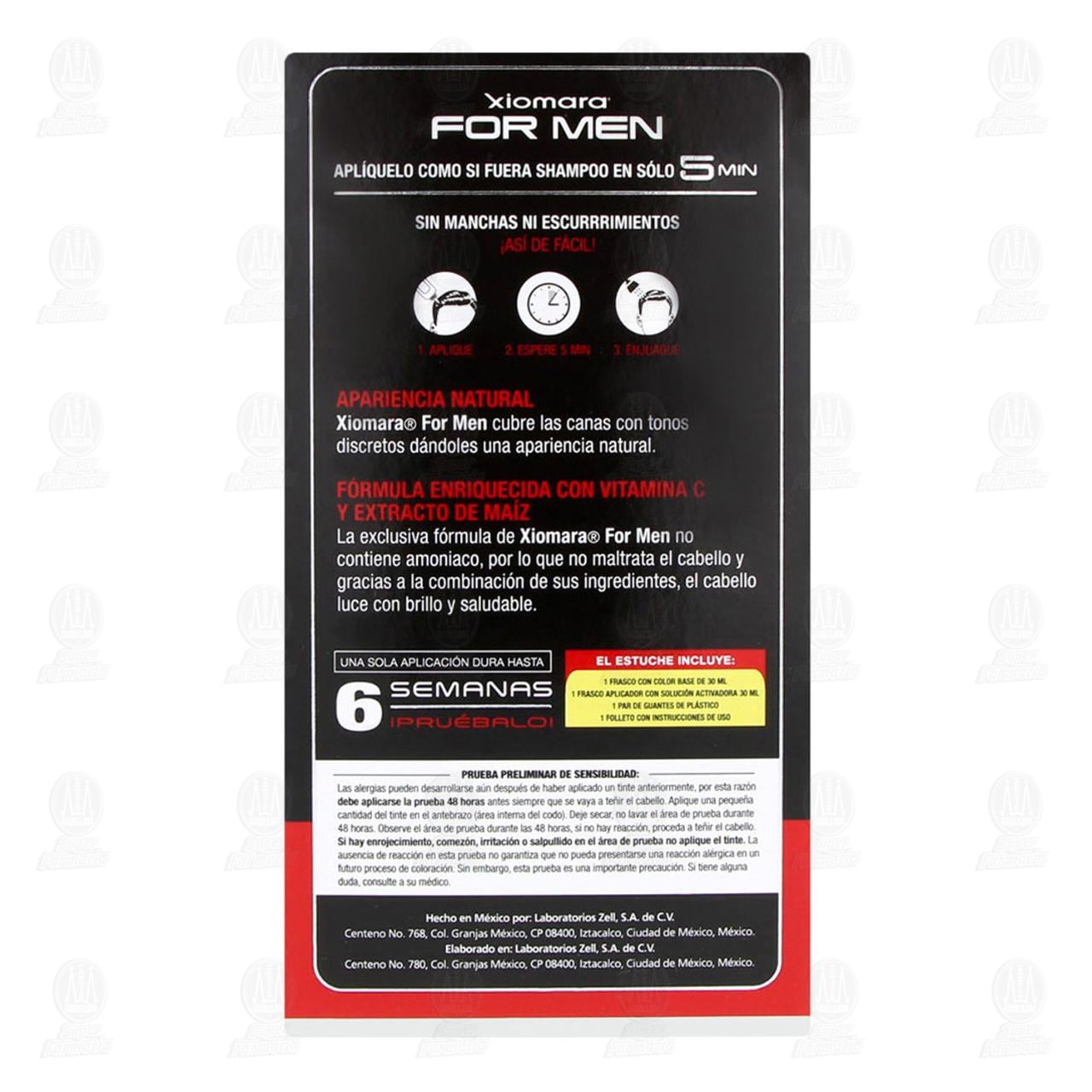 Tinte en Shampoo Xiomara For Men Color Negro para Hombre, Enriquecido con Vitamina C y Extracto de Maíz, Dura hasta 6 semanas, Aplícalo en tan solo 5 minutos. Contiene 1 pieza.